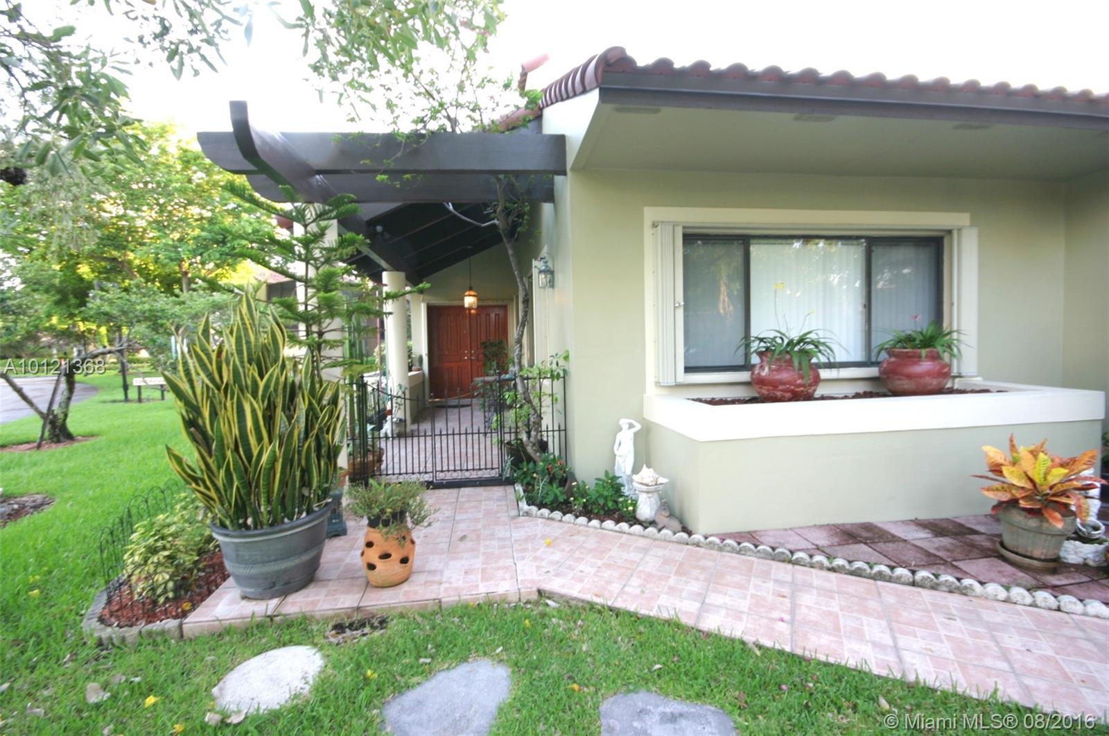 Costa del Sol is one of Doral's most desirable locations! 3/2 ONE STORY! Corner Townhome, with 24hr gated security patrol. Updated kitchen & Bathrooms, Vaulted Ceilings, new roof 2007, Tiles throughout, Hurricane Shutters, washer & dryer, converted garage with plenty of storage. Enjoy the serenity of this maintenance free community surrounded by luscious landscape along with lake and golf course views, pool, tennis, basketball courts, restaurant, bicycling & jogging paths! Come see this well kept secret.