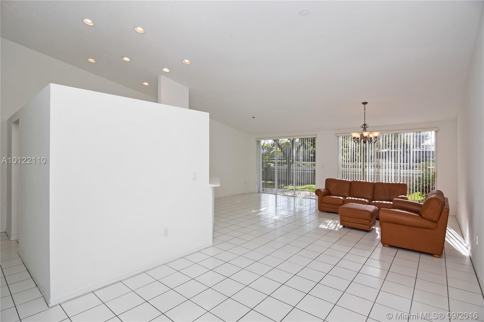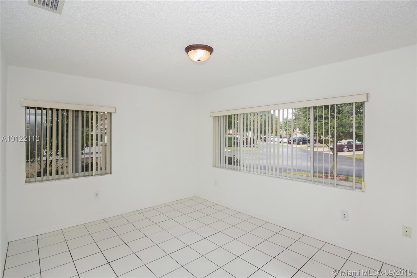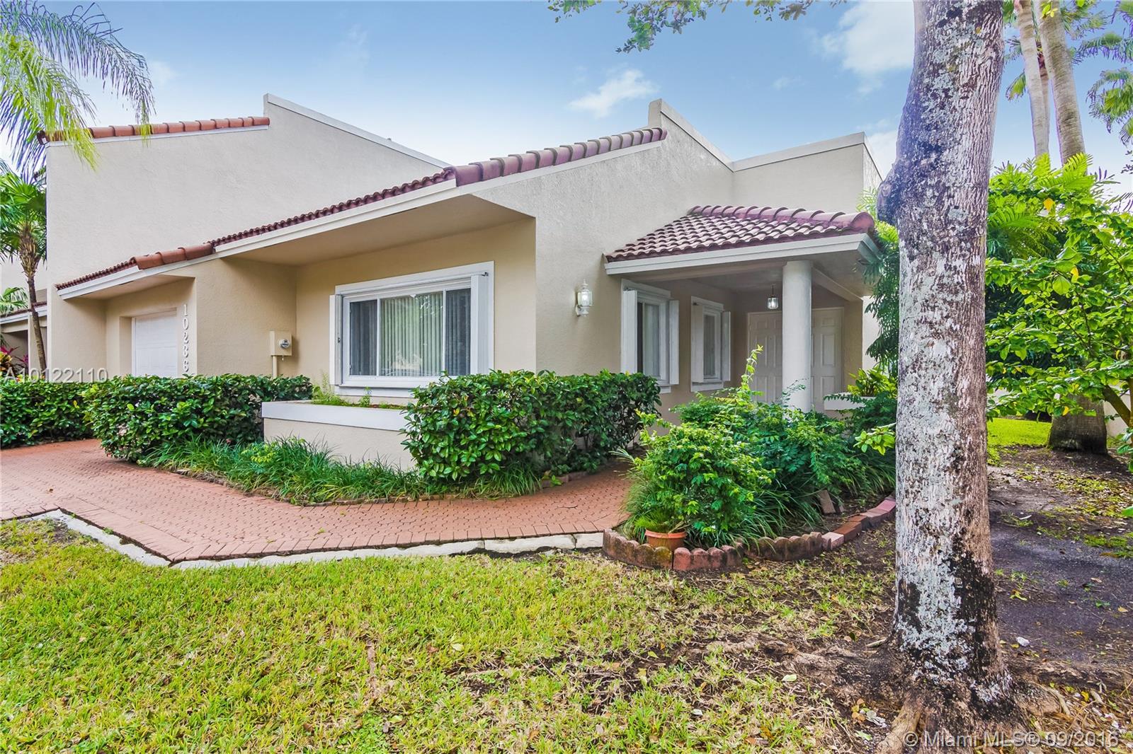 Beautiful & spacious corner 1-story Townhouse with lots of natural light throughout. Fully tiled, brand new stainless steel kitchen appliances and lovely white cabinetry kitchen. Large Master bedrooms with walk-in-closets and spacious Master Bath with soaking tub, bidet and separate shower stall. 3rd bedroom closed in for privacy. Great private courtyard with patio brick pavers perfect for entertaining. Centrally located in sought after Doral Park Country Club area. Great community with endless amenities.