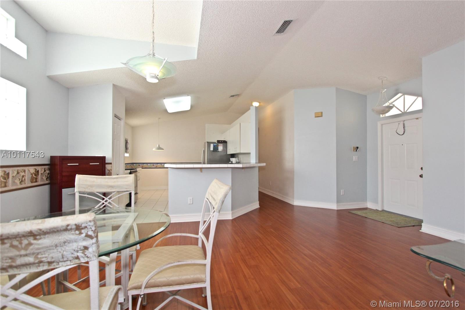 A METICULOUS GEM! So well kept in top condition. Spacious kitchen opens up to living area. Ideal floor plan. Yard large enough for kid play, dogs, BBQ-ing, and more. Laminate Floors. Large walk in closet, Master Bathroom with his/hers sinks, beautiful decorative mirrors, with tub and stand up shower. Association fee covers lawn care, sprinklers, basic cable, alarm security, club house, gym. Seller is highly motivated and ready to make a deal, don't hesitate to send your offer!