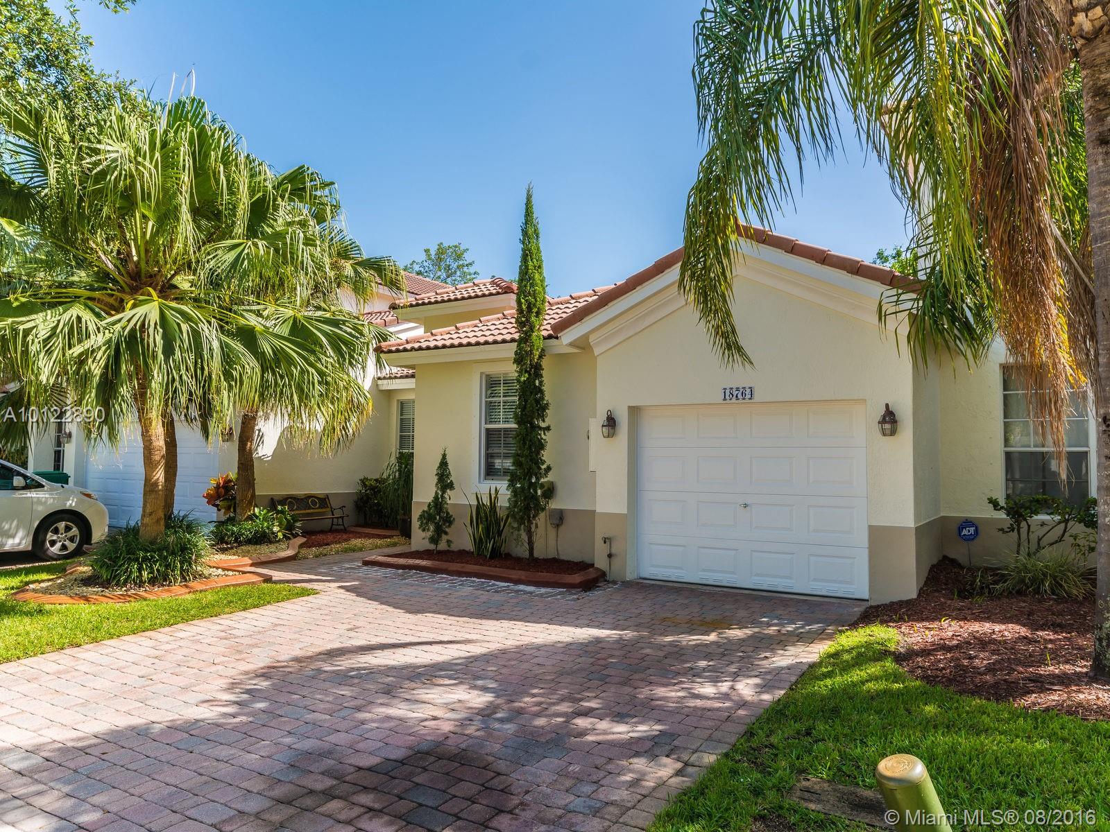 One story 3 bedrooms, 2 bathrooms villa/townhouse with 1 car garage, in the great community of Grand Key at Sunset Lakes. Tile and laminated wood floors. Newer A/C and water heater. Extended patio. Resort Style Club House with pool, tennis court, basketball court, gym and sauna. HOA includes alarm and basic cable.