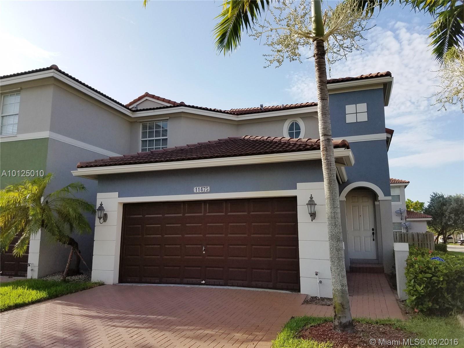 BEAUTIFUL CORNER HOME IN DORAL WITH FENCE PATIO/ PAVERS AND COVERED LANAI/TERRACE AREA FOR BBQ'S AND ENTERTAINING. LOTS OF UPGRADES INCLUDING TILE AND WOOD FLOORS, BUILT IN CLOSETS, S.S APPLIANCES AND MORE. BEAUTIFUL COMMUNITY WITH POOL, SECURITY PATROL, GATED COMMUNITY, BAUTIFUL CLUBHOUSE, GYM, PARTY ROOM, TENNIS, BASKETBALL AND MORE. EXCELLENT SCHOOLS FOR CHILDREN, MINUTES FROM TURNPIKE, PALMETTO, DOLPHIN MALL AND OTHER SHOPPINGS AND RESTAURANTS.