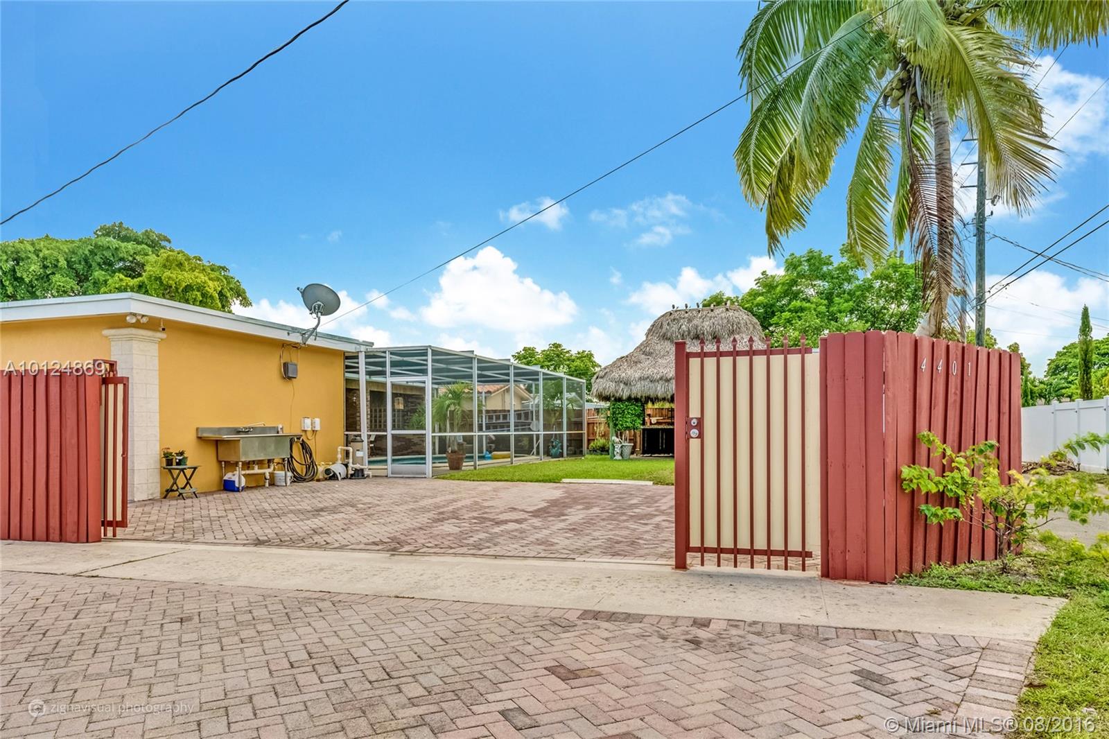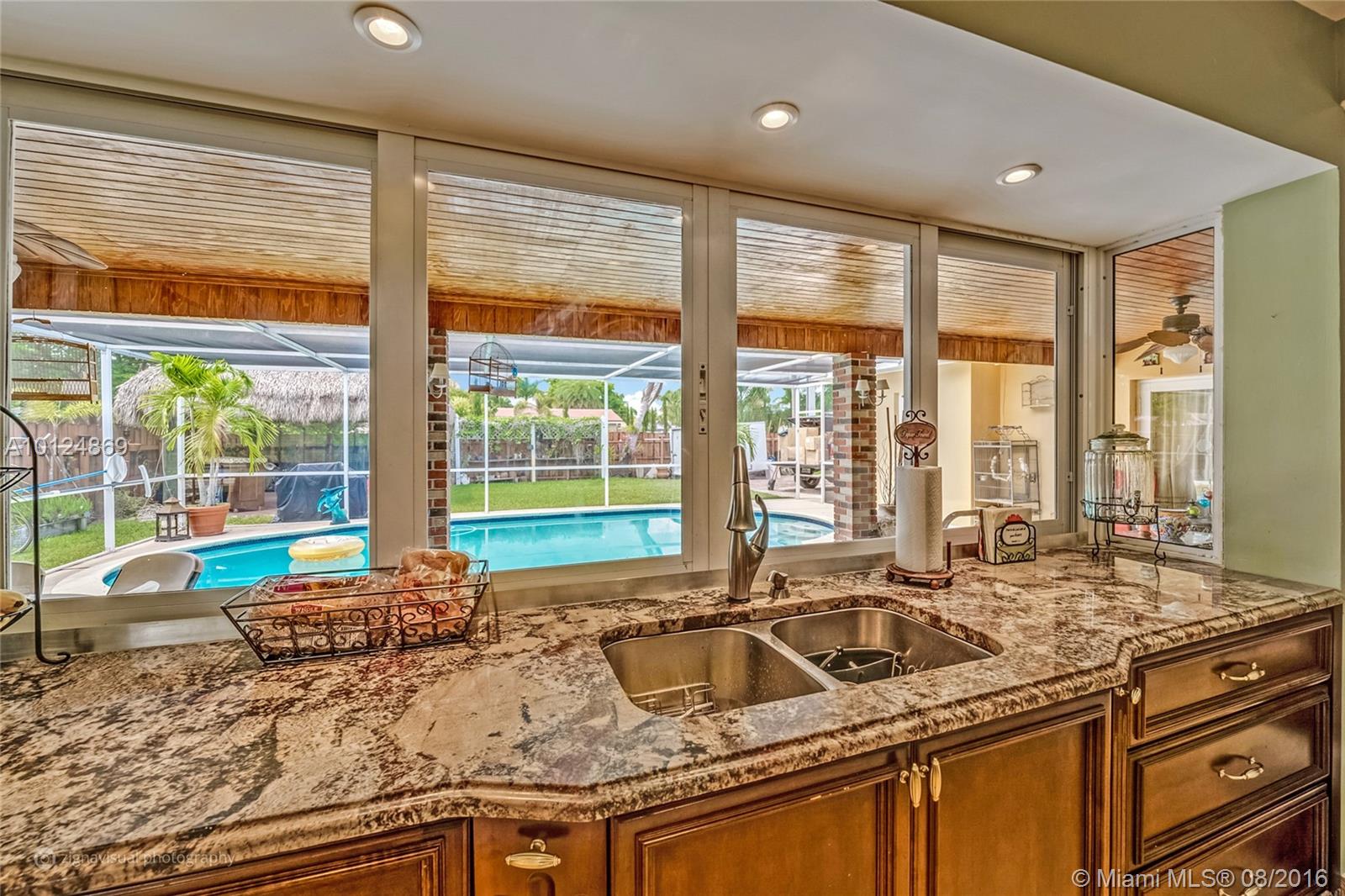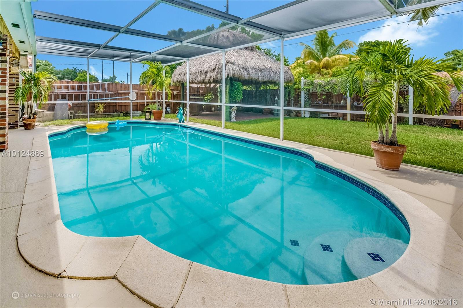 Magnificent remodeled home in Hollywood on quiet street. Right across the street from elementary school. Captivating marble flooring throughout the main living areas. Custom kitchen featuring exotic granite counter tops, hardwood floors, stainless steel appliances and breakfast bar. Vast screened pool and patio area great for gathering your family and friends. Enjoy a sunny day by the large pool or cool night bar side under the large tiki hut.