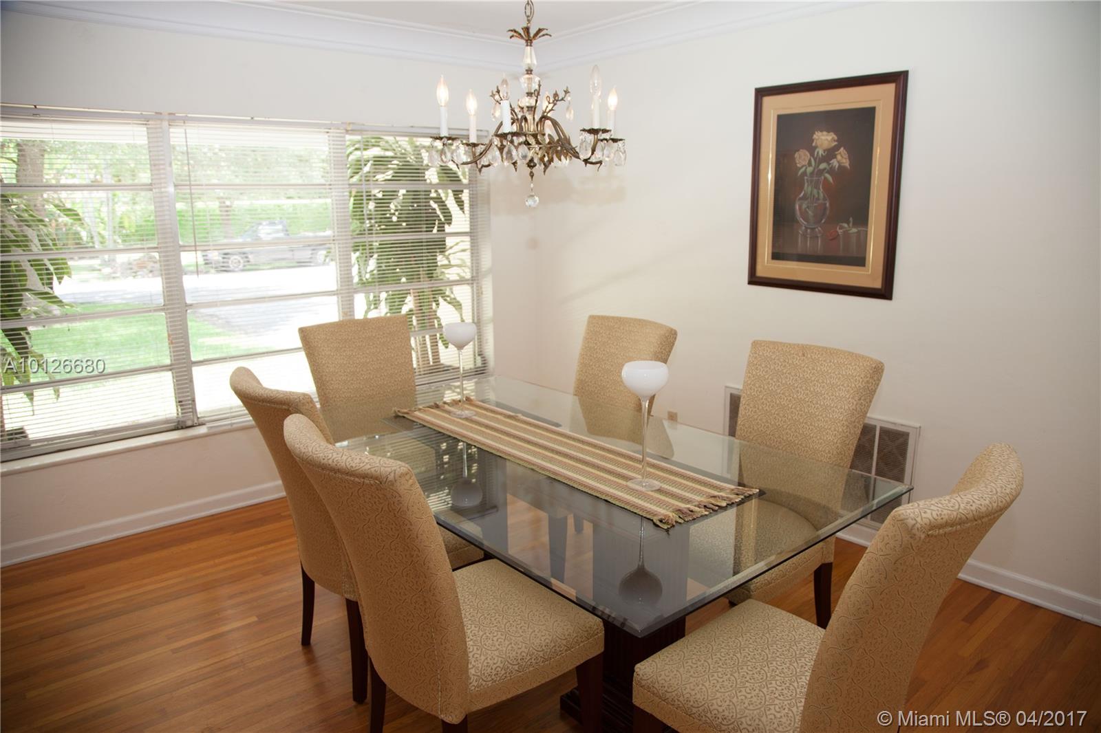 Location, location, location. Quiet one block long street in a serene setting of large shady trees. Original Coral Gables home well built when construction and materials were important to pioneer builders.. Spacious rooms, formal dining room, Country kitchen, breakfast bar and breakfast area. Florida room with built-in bookcases. Small maid's room adjacent to garage. Oversized lot 11,110. Room for a pool. Sold as is with price allowing for renovations.