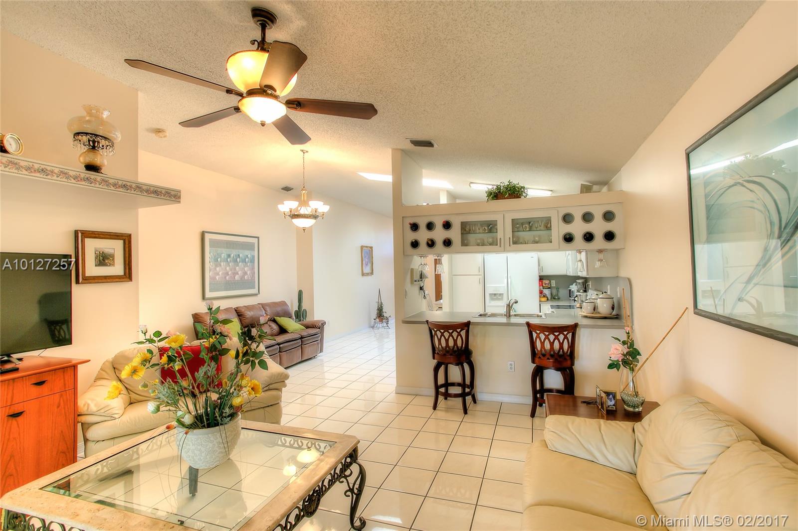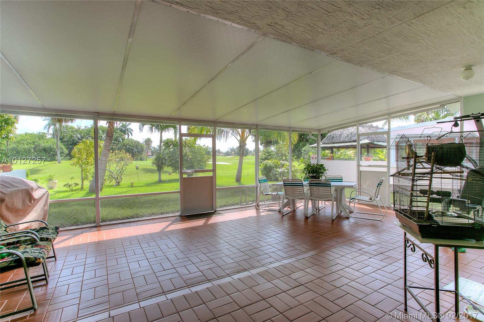 The lowest price home in Country Club of Miami. Rarely available single family home on the golf course in Country Club of Miami. Golf course community, 3 bedrooms, 2 bath with 1-car garage. Sit in your private patio to a direct golf course views from which you can see inside the home as well. Master bathroom, master overlooking the screened-in, extended covered terrace. Low HOA dues paid yearly just $180 per year. Easy access to Dade & Broward County.