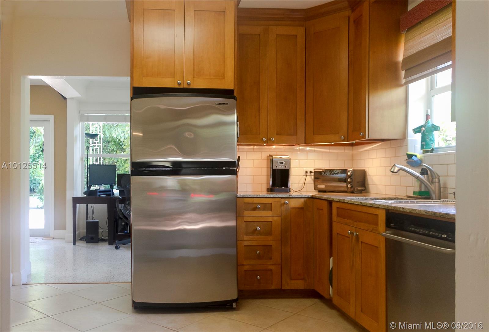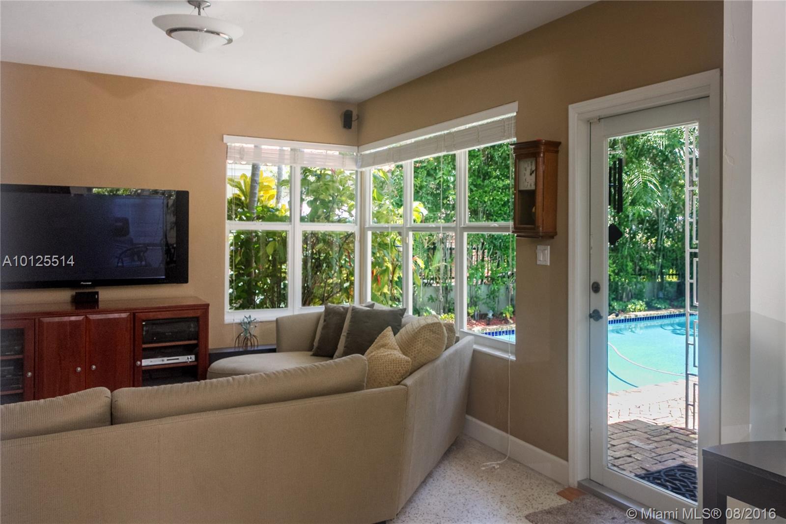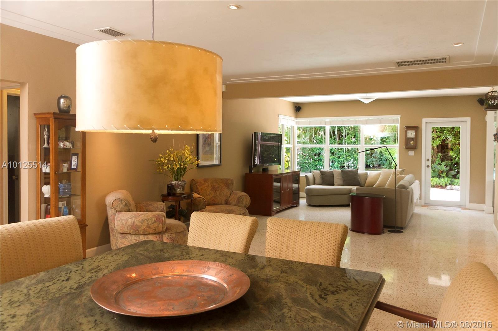 Charm & Modern Conveniences in quiet picturesque Gable neighborhood attractive landscaping w/Chicago Brick at front entrance & surrounding large backyard deck ,bright living room opens to inviting pool & entertaining private yard. Spacious kitchen w/window, updated appliances. 1 car garage w/storage. new Master bath. Impact glass, terrazzo floors termite guaranty Live the urban lifestyle walk to Restaurants, shopping book stores ,airport only 15 minutes. dining room table available for sale.