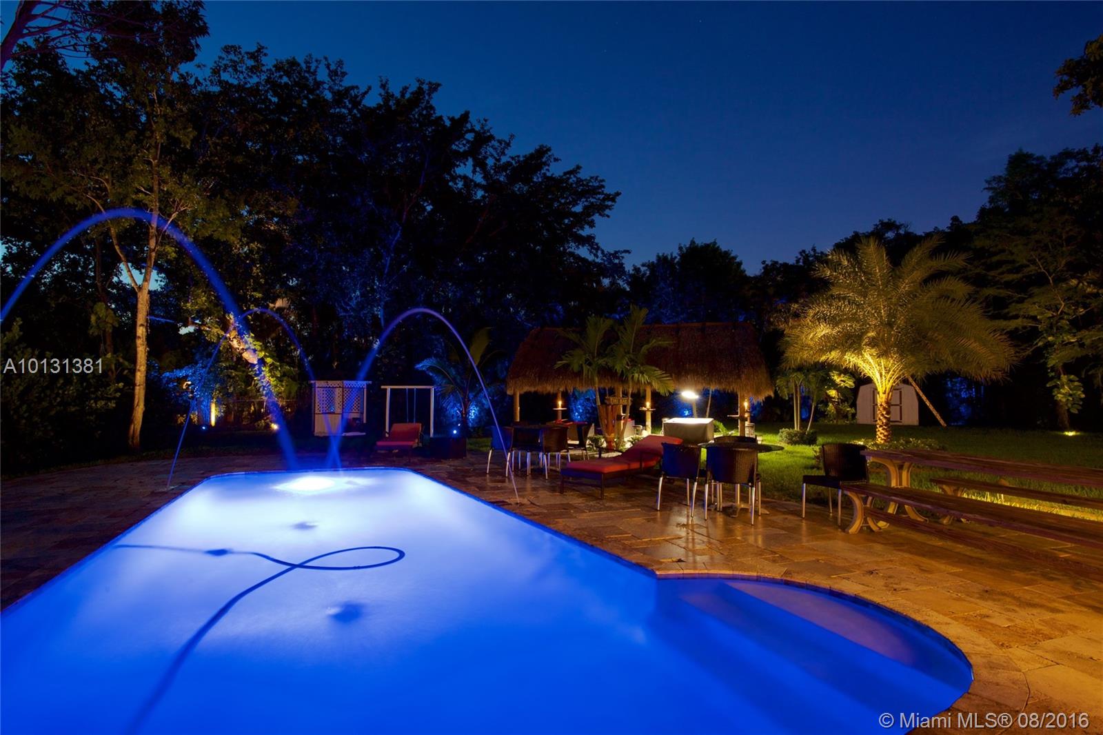 Fully renovated, gated residence with a contemporary interior on almost 1 acre of land with lush, tropical landscaping. Oversized Tiki Bar with flat screen TV. Heated pool with jacuzzi. Remote-controlled mosquito fogging system installed throughout the entire estate. The perfect home for entertaining. This is a must see!