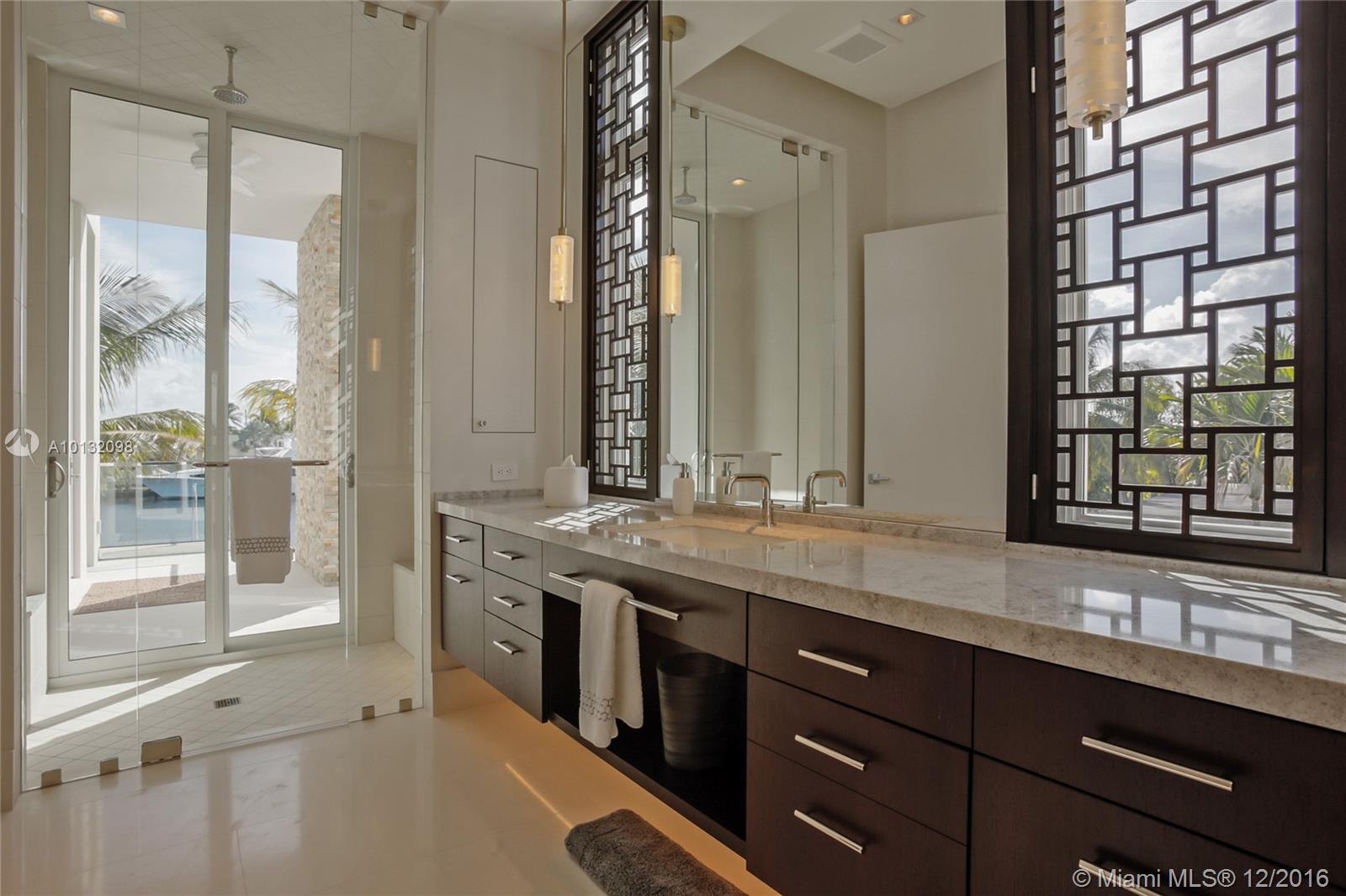 Unique, stunning, modern gated estate.Partially furnished. Turn-key.Built 2016.90ft water frontage with panoramic views and dock for up to 70ft boat. Infinity pool with attached spa.Designer chefs kitchen with walk-in cooler.Sub-Zero/Wolf appliances with wine storage. Five VIP suites with wet bar and balconies.Master his/hers bathrooms with spacious walk-in closets.Elevator.Separate office.Two attached garages with lifts (house up to 5 cars).Water filtration system throughout.Security cameras throughout.