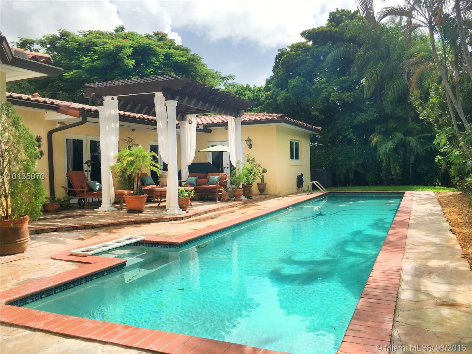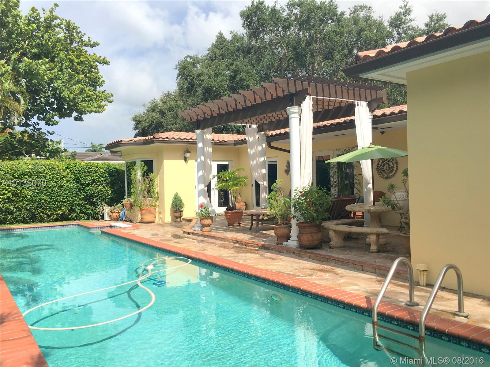 New Listing. Updated 3 bedroom/2 bath home south of Blue Road in Coral Gables with stunning open pool and large patio for entertaining. Ready to move into. 2,143 adj. sq. ft. Foyer entry. Living room with fireplace, Formal Dining Room, Eat-in kitchen. Newer baths. Impact windows. 2-car garage. 10,500 sq. ft. lot with fenced yard. This home has all the bells and whistles and is well-priced.