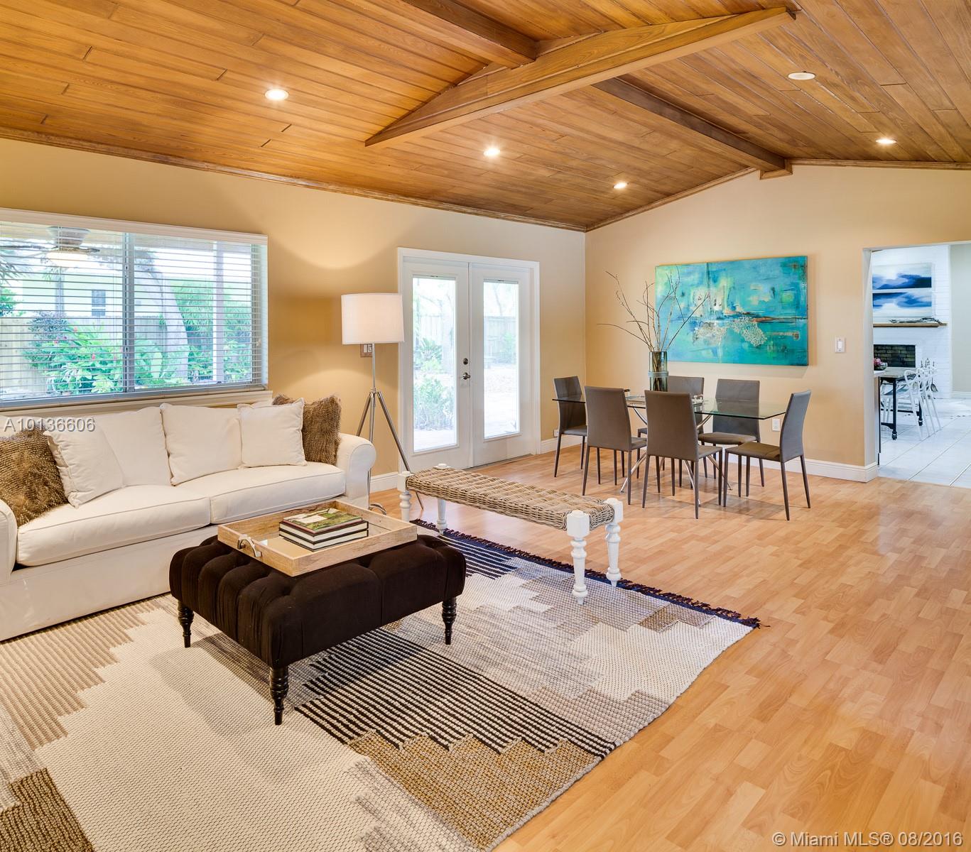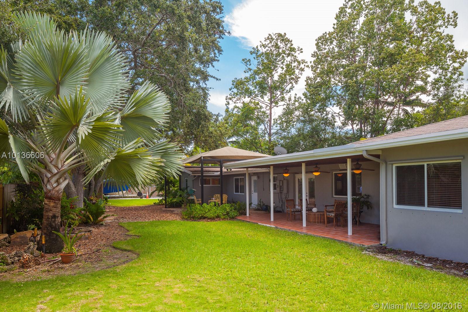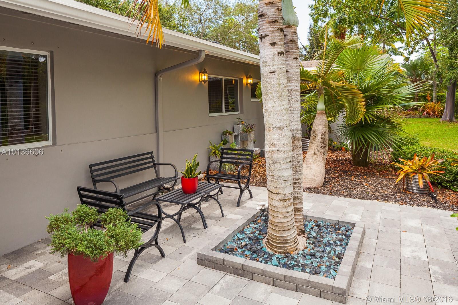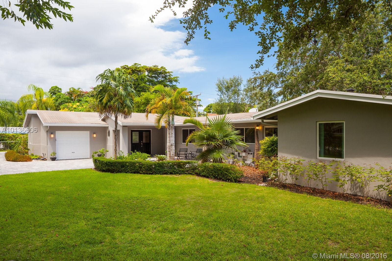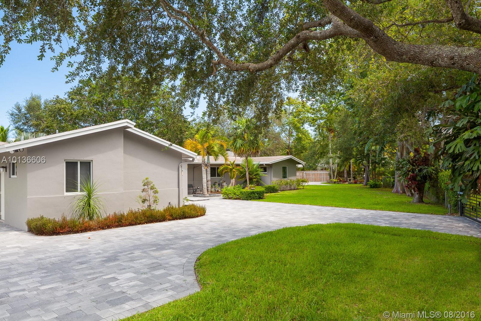 Welcome to Pinecrest comfort with Coconut Grove appeal. Come inside to find a tranquil home exuding warmth & style with a fresh, chic vibe. Vaulted wood ceilings, brick frplc & a brand new upscale kitchen set the tone for todays casual but stylish lifestyle. Sitting on a lush, gated, corner lot & surrounded by exotic foliage, highlighted w/landscape lighting, this home sparkles, day or night. Covered terraces & meditation areas add to the allure of this very special space to call home