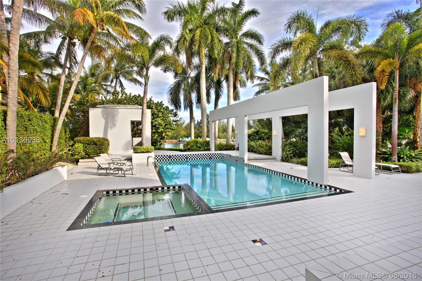 Best priced Coral Gables waterfront - 1 bridge to bay, a must see! Porte-cochere entrance Grand 2 story Glass foyer/Living Room w/Fireplace/Bar/Zen Garden. In & Out Dining/ Poggenpohl Kitchen/Family RM open to terrace/pool/cabana. 1st fl 2 bed/2nd fl 2 bed & baths +home Theatre/Stainless stairs to Lux Master w/ bath/closets/terrace. Full house generator. Lush landscaped path & gardens/ 50 ft dock. Showcase Art & Entertain Celebrities in this Exceptional home. A '10'+