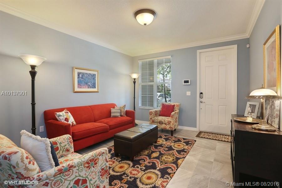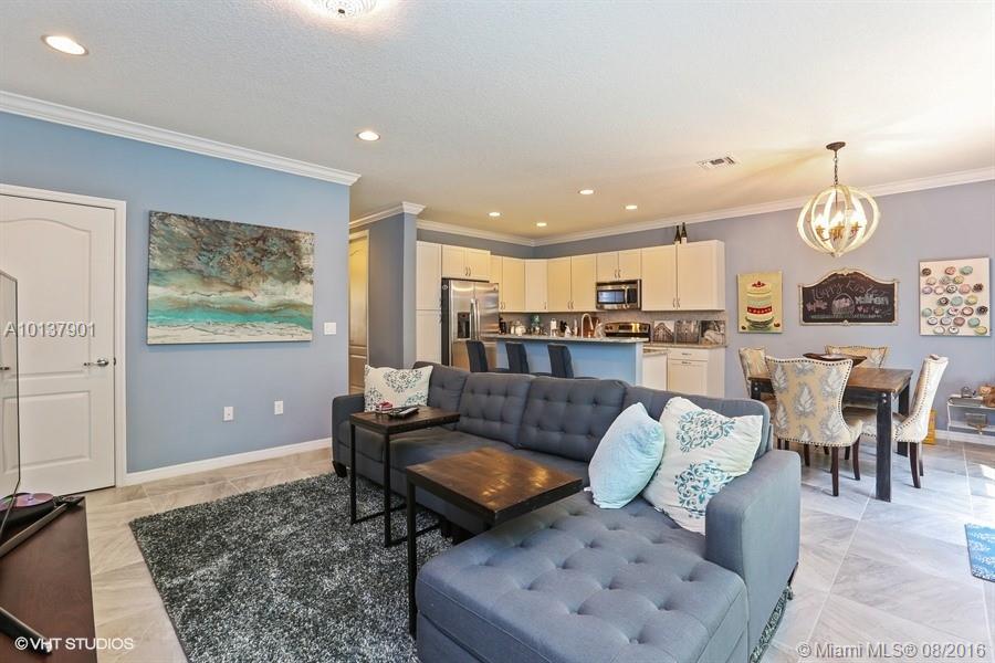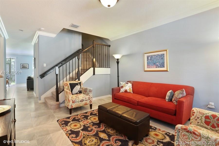Straight out of a magazine! Stunning townhome featuring porcelain floors on 1st floor. crown molding, Gorgeous neutral colors, all impact windows, pass through the Living room to an open kitchen with granite tops, 42" cabinets,lots of counter space, kitchen opens to a large Family room. Screened patio with private setting.Unit backs to a field with no neighbors in site.Large Master,huge walk in closet and a Master bathroom to die for! Community pool and gym are only 3 units over. This is it, better hurry!