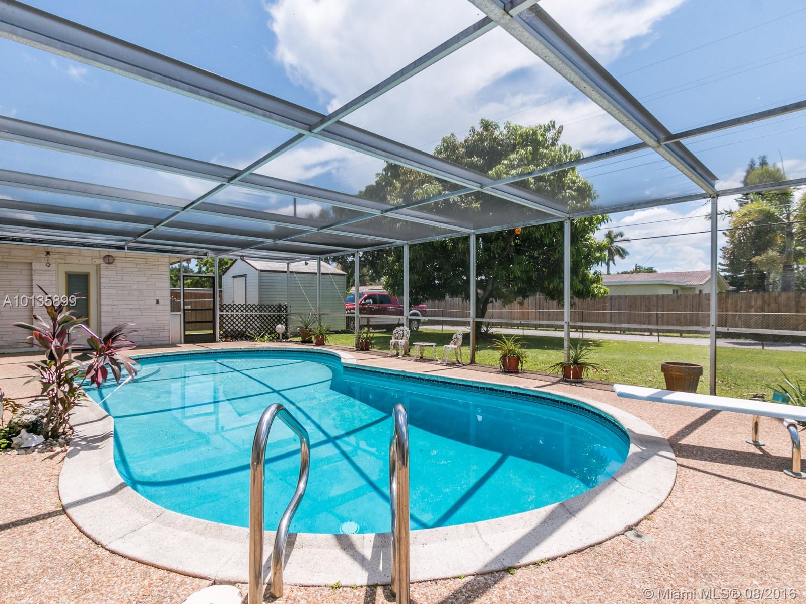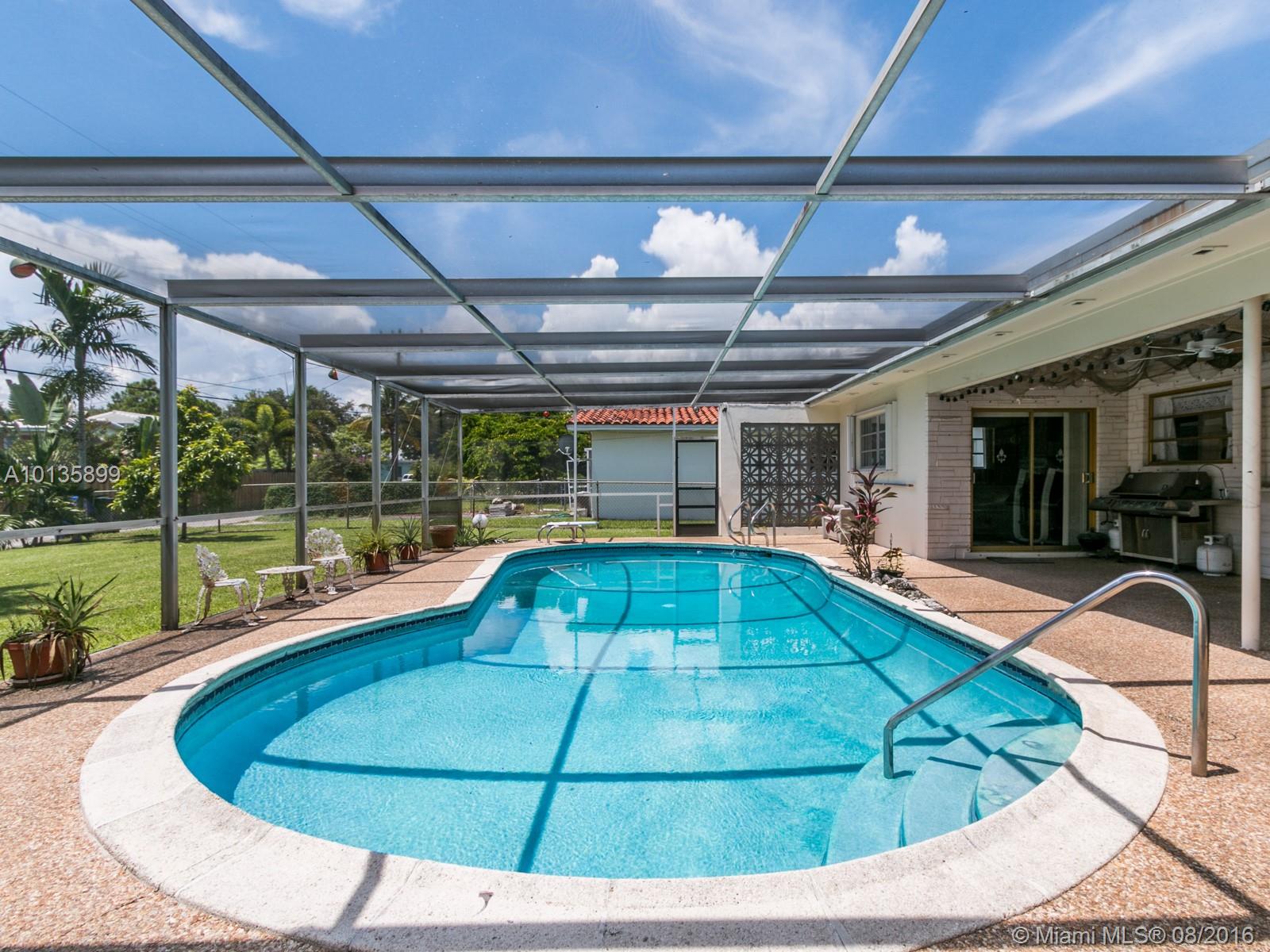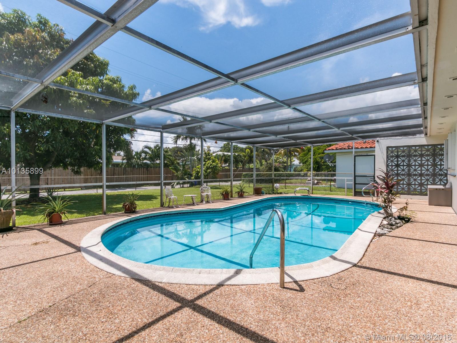 Lovely pool home in the heart of prestigious Hollywood Hills. 3 Bedroom 2 Bath, 2 car garage. Kitchen beautifully remodeled with granite counters and custom cabinets. Fruit trees in the backyard with fenced in area. Extra parking in the alley behind the house. Pool and large patio area has screened enclosure. Tool shed.