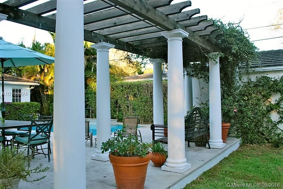 On corner w/custom enclosures and gates, 3 bdrm/3 bath, lovingly restored. Granite Motor Court, professional landscape, columned Entry Porch. Loads of Mouldings/Millwork, high ceilinged LR, formal DR, eat-in Farmhouse Kitchen, Fam Rm w/vaulted, beamed ceilings. Large Salt Water Pool/Stone Terrace, vine-draped Pergola, detached Garage, Huge master w/2 walk-in closets, dressing area, sitting area, Bathrm. Laundry Rm in Bdrm wing. Impact Windows/Doors; wood/terrazzo flrs; 2006 Roof.