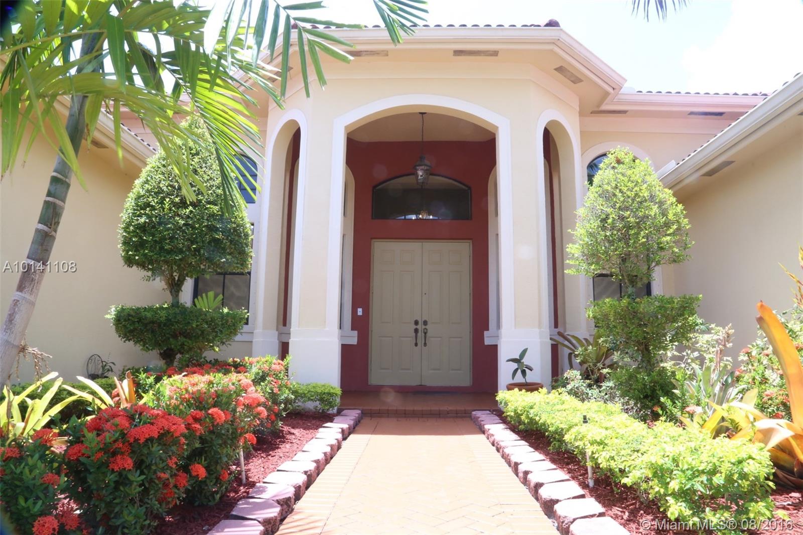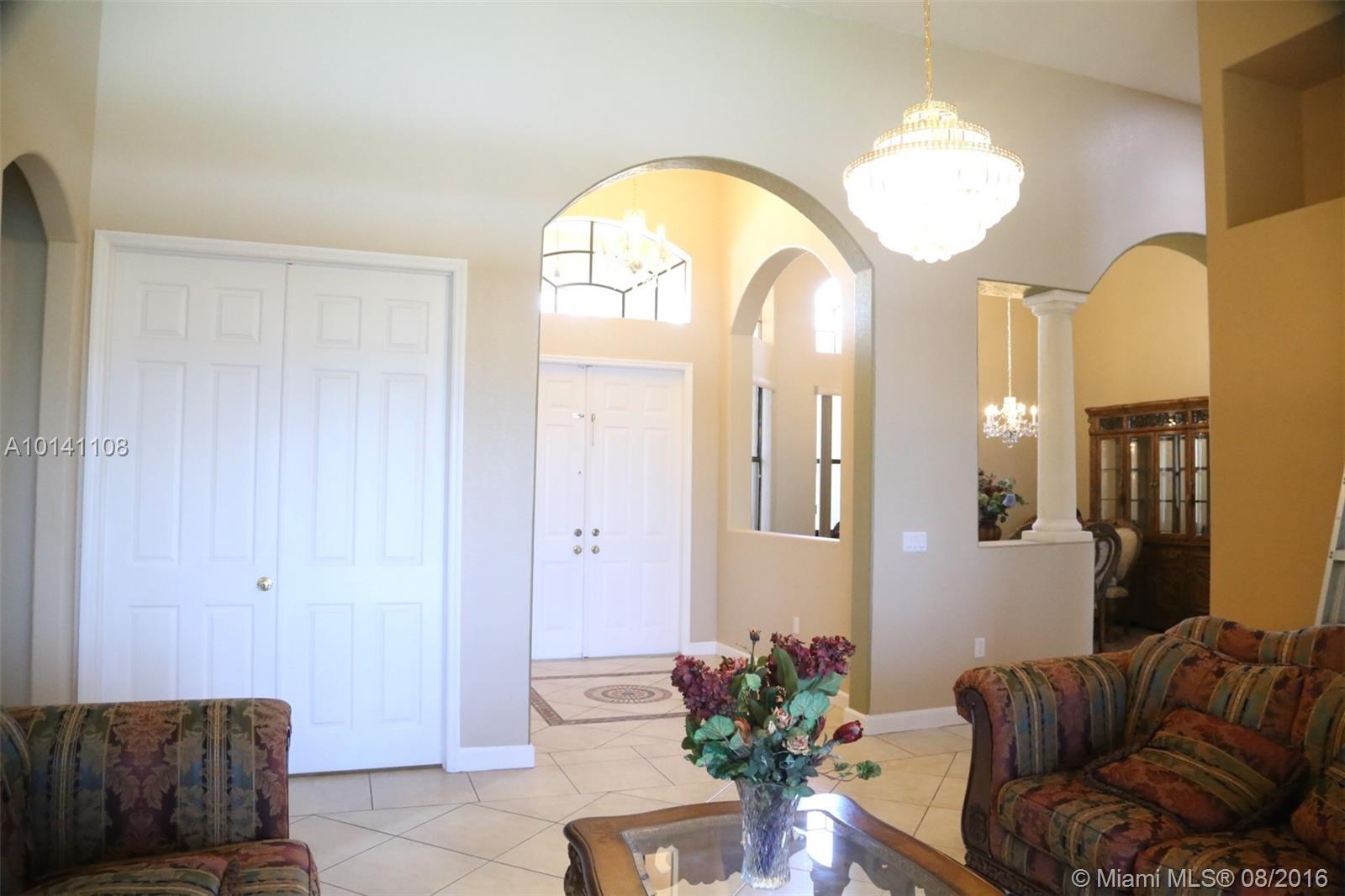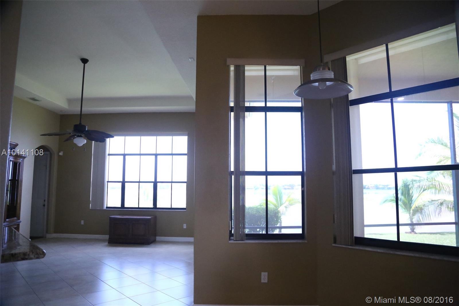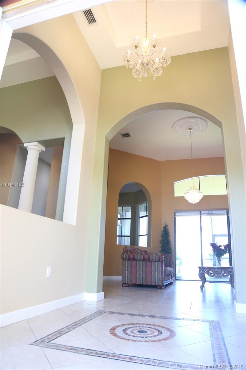 Beautiful 5-Bed/ 3-Bath, waterfront home in desirable gated community Harbor Lake Estates located in West Miramar. Spacious 1-Story with open floor plan, high ceilings & tile though out, kitchen w/granite countertops & wood cabinets, laundry room, 5th additional bonus room/den/office, 3-car garage, paved driveway, storm shutters, huge Premium quarter acre lot/ 11,963 sq. ft. Amazing backyard for entertaining with large screened terrace area and gorgeous panoramic views of 175 acre Lake. A Rated Schools!