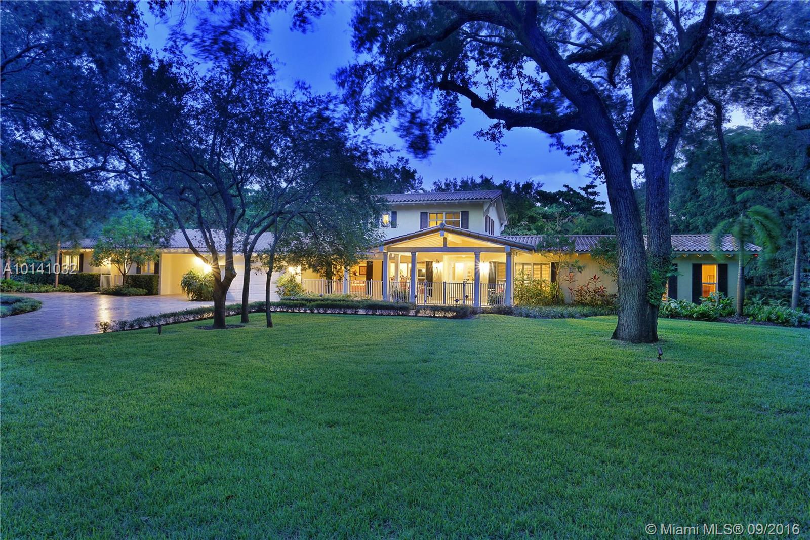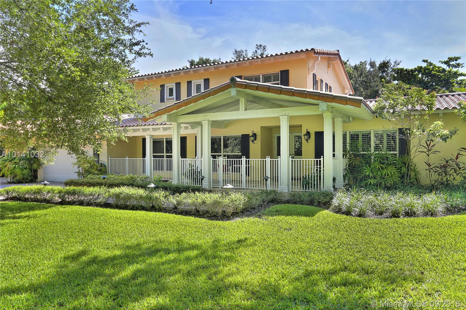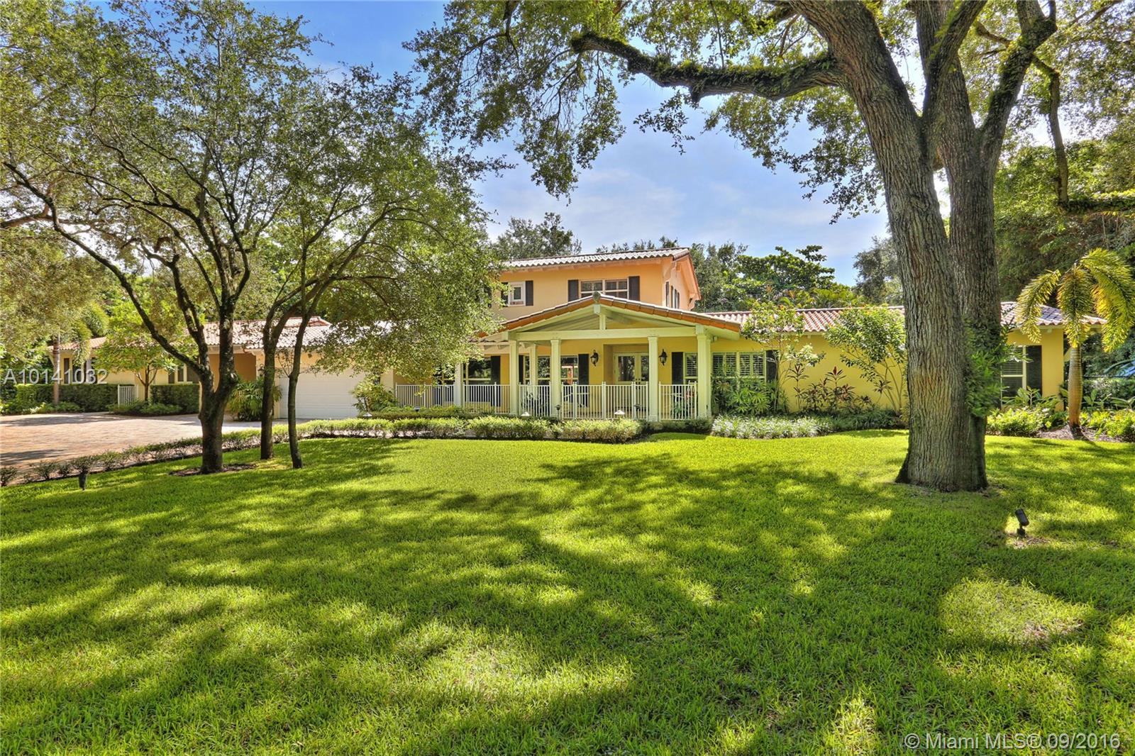 Southern Living in North Pinecrest! Situated on a cul-de-sac on the most beautiful & low traffic street in NE Pinecrest! 4bed/4.5bath in the main house + 2 bonus rooms, & 2bed/2bath guest house w/kitchen, laundry, living room & its own entrance. Special details include a large front porch, hardwood flooring, PGT impact windows, volume tongue & groove wood ceilings, crown moldings throughout, Trane AC systems, stainless steel appliances, plantation shutters, & generator that services both main/guest home.