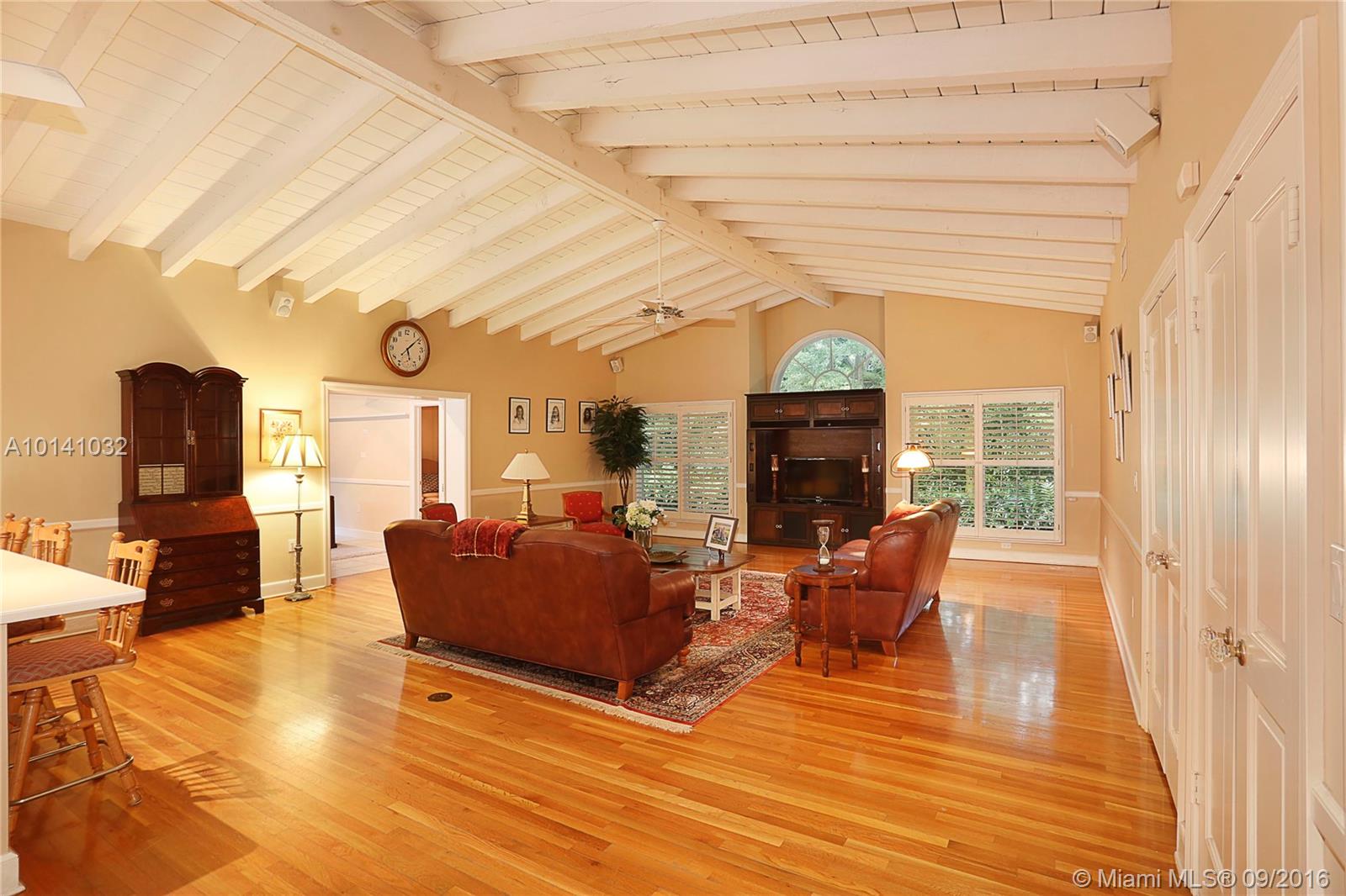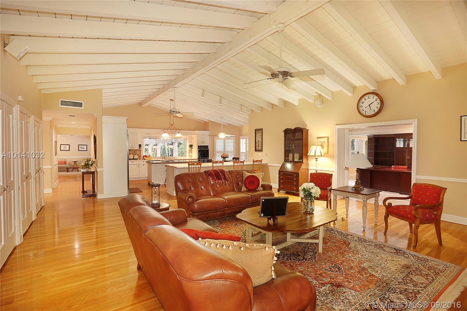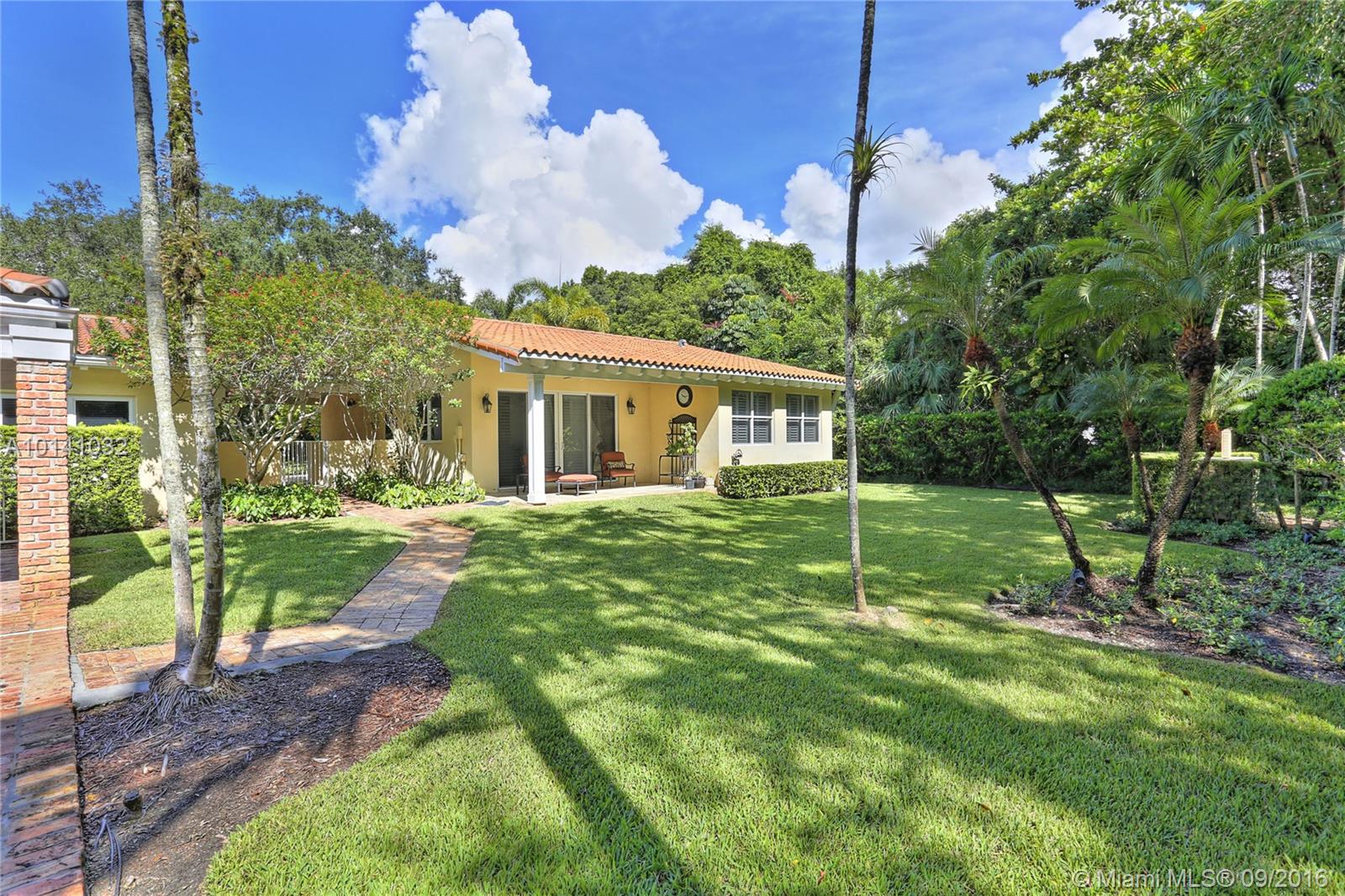 Southern Living in North Pinecrest! Situated on a cul-de-sac on the most beautiful & low traffic street in NE Pinecrest! 4bed/4.5bath in the main house + 2 bonus rooms, & 2bed/2bath guest house w/kitchen, laundry, living room & its own entrance. Special details include a large front porch, hardwood flooring, PGT impact windows, volume tongue & groove wood ceilings, crown moldings throughout, Trane AC systems, stainless steel appliances, plantation shutters, & generator that services both main/guest home.