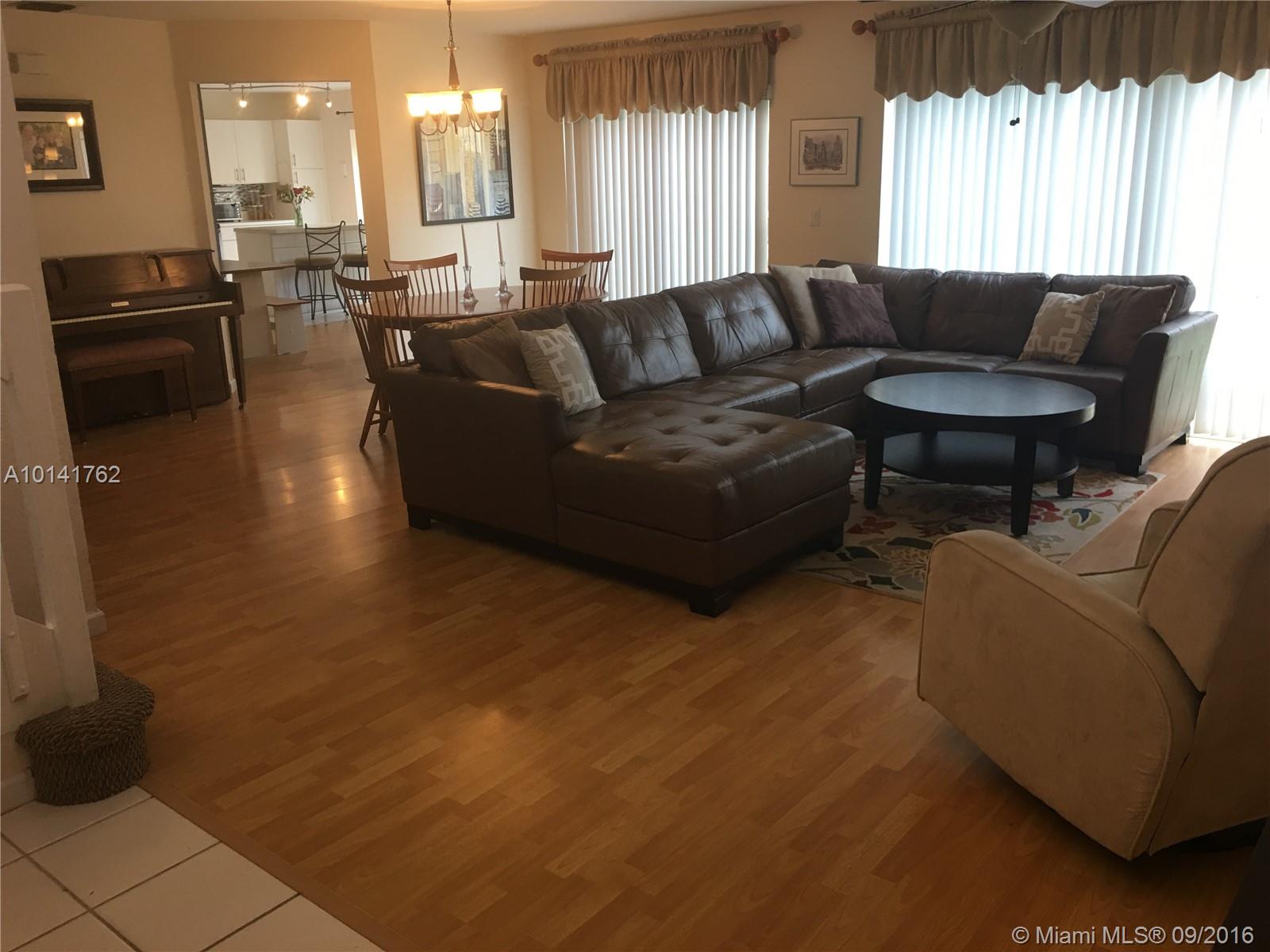 This four bedroom house is in an A+ Cooper City school district. Walk to Embassy Creek Elementary, and to the community pool/clubhouse. Located on a quiet tree-lined street, the house has stainless appliances, quartz island, attached 2-car garage, laminate floor throughout living and dining room, fenced yard with patio, master bath with two sinks and separate shower/Jacuzzi tub, and laundry room inside. It's in a quiet, gated communitY.