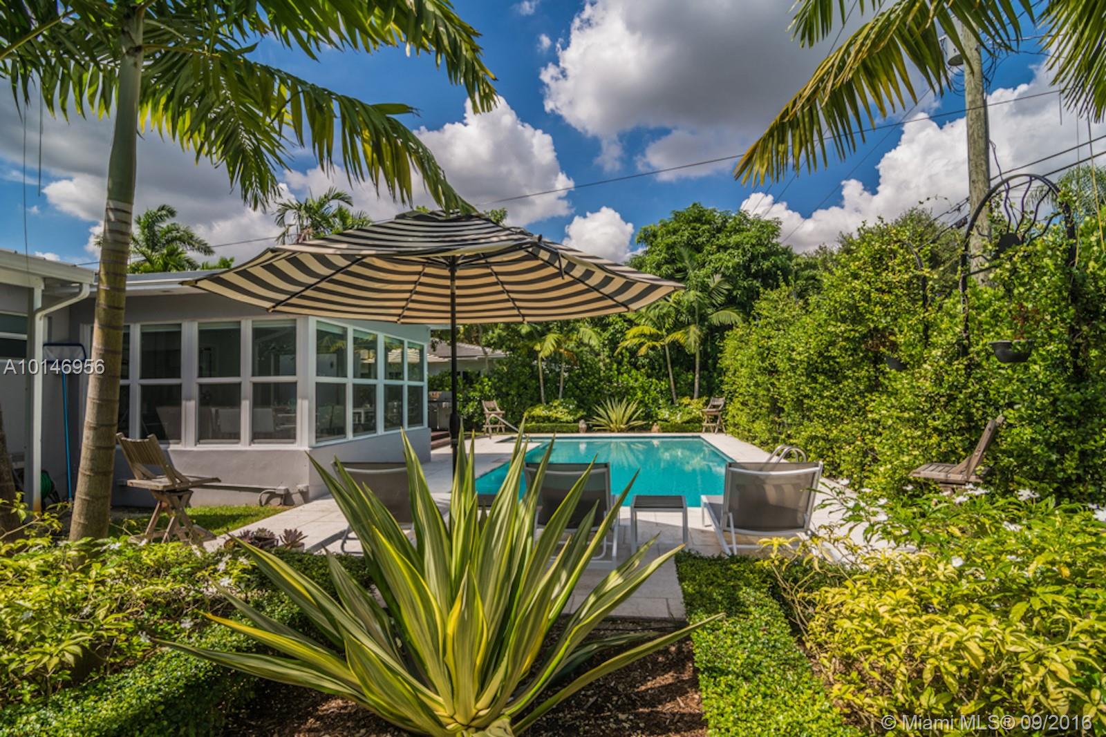 Light bright and fully renovated describe this 3 BD/3BA 1,740 SF home on a private, landscaped, fenced 7,650 SF lot.Its the secret garden and oversized saline pool that will sell the true south florida lifestyle. New Kitchen and renovated baths add to this turn key offering.