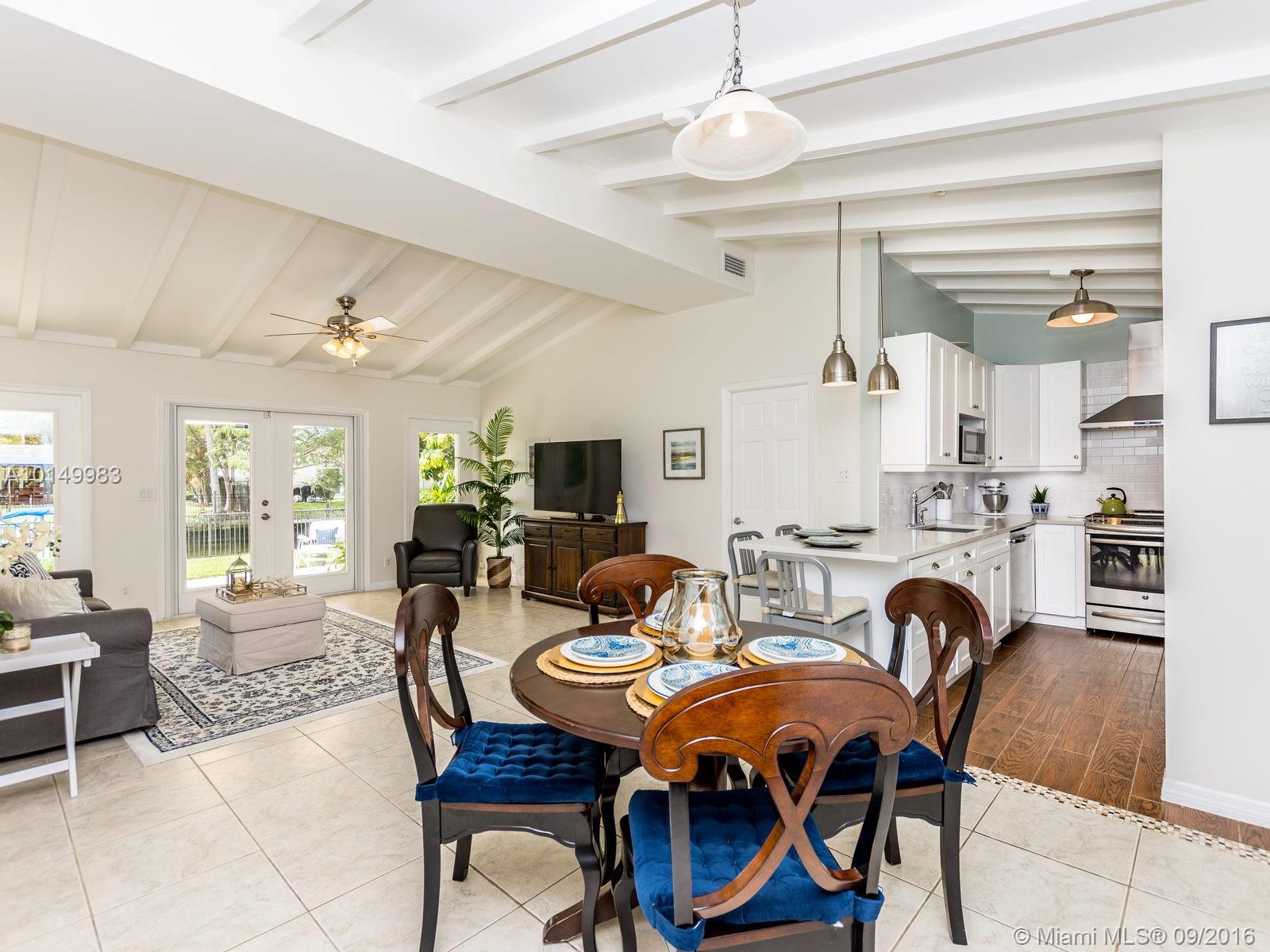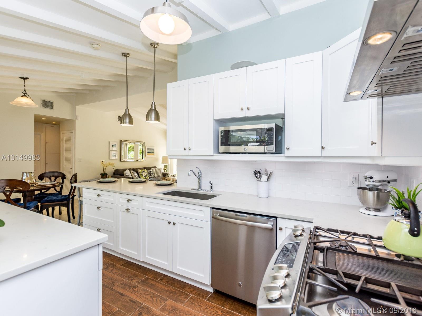 This home features soaring open beam ceilings, wall to wall windows that allow for plenty of natural light to flow throughout this airy layout. Remolded kitchen, premium finishes and fixtures including custom wood cabinets, pantries, Quartz countertops, peninsula with seating, pendant lighting, and high end GE Profile stainless steel appliances. Home offers remolded bathrooms and laundry conveniently located inside. No fixed bridges.