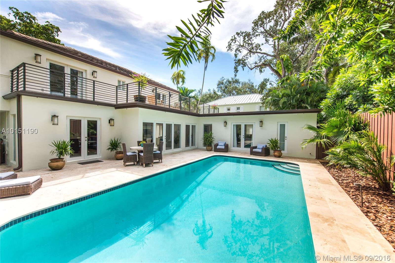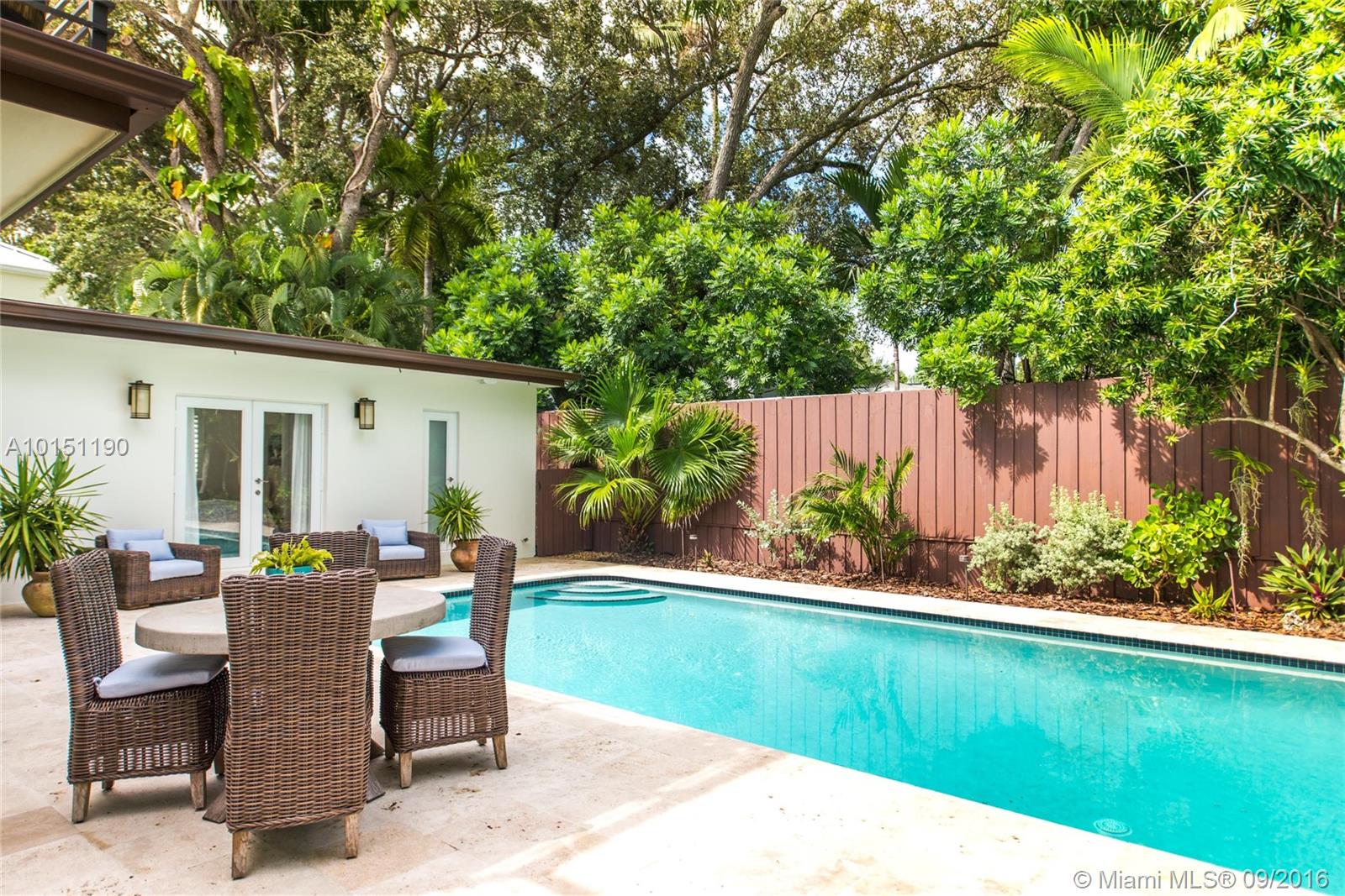 Elegant magazine quality home on quiet tree-lined street in coveted location of multi-million dollar estates. Total renovation in 2014 including impact glass, new roof, whole-house generator, Italian porcelain & wood flrs. and spa-like master bath w/ his & hers showers & Jacuzzi tub. Expansive chefs kitchen with wood/stainless/quartz & Thermador appliances. Luxurious master suite opens to 500 SF terrace overlooking walled pool & garden.Unique 200 +bottle wine cellar featured in Wine Enthusiast magazine.