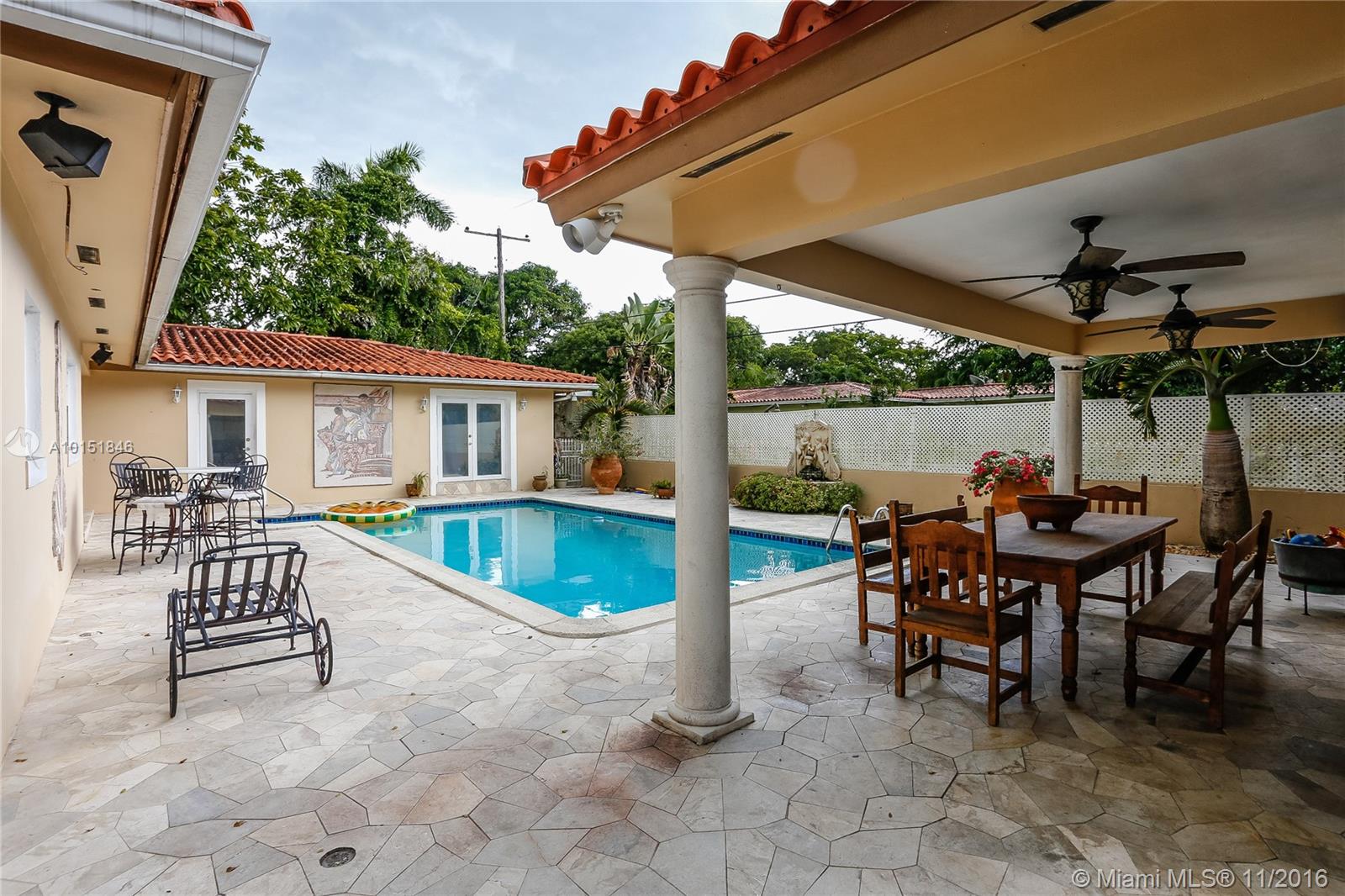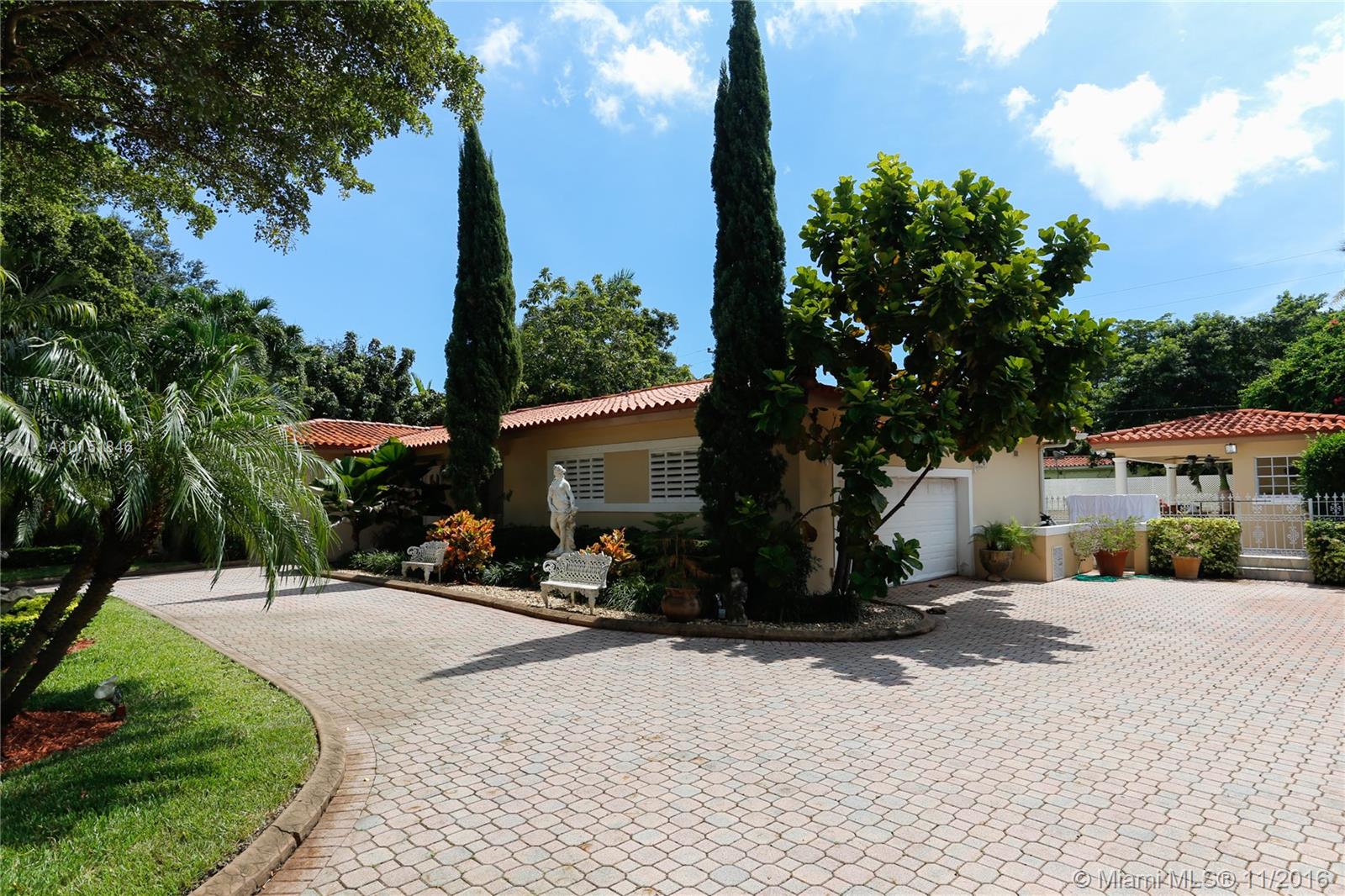 Unique Coral Gables Gem..Private Gated 4 bedroom 4 bathroom residence situated one block from Biltmore Spa & Golf course ..Features include marble and hardwood floors updated granite kitchen with stainless steel appliances and breakfast nook overlooking pool & outdoor gazebo equipped with sauna- Brick Paver circular driveway with a plethora of parking spaces -enough room for boat- Location is very central - minutes to schools and churches, easy access to major thoroughfares