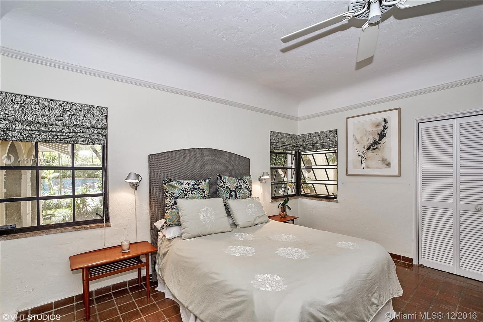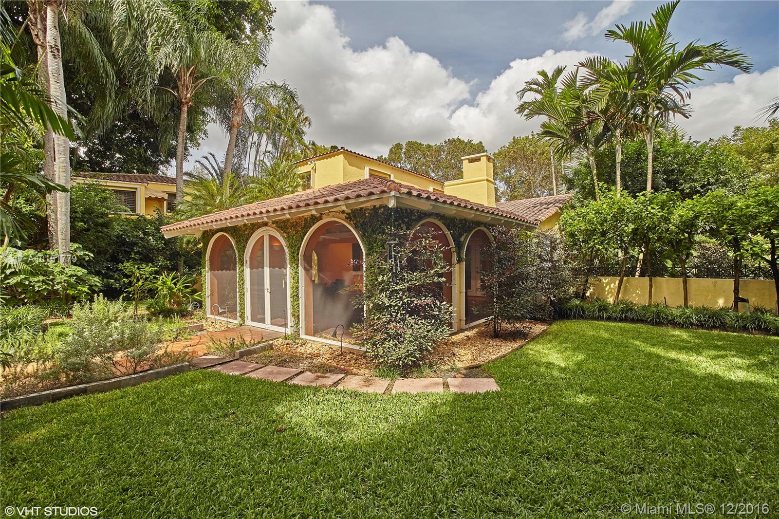 The gated entrances and lush gardens of this Old Spanish villa recall an era of charm and elegance. The cathedral beamed ceiling and massive fireplace in the formal living room imbue the home with the drama of historic Coral Gables. The fabulous landscaping of this large property affords maximum privacy while enjoying the patio and a pool for the serious swimmer. A guest house and screened room perfect for dining and entertaining complement this graceful home in the Golden Triangle.