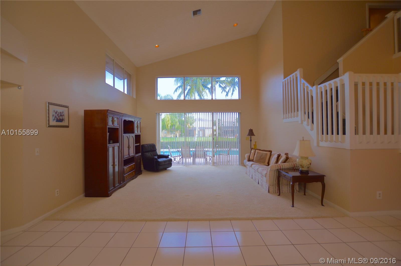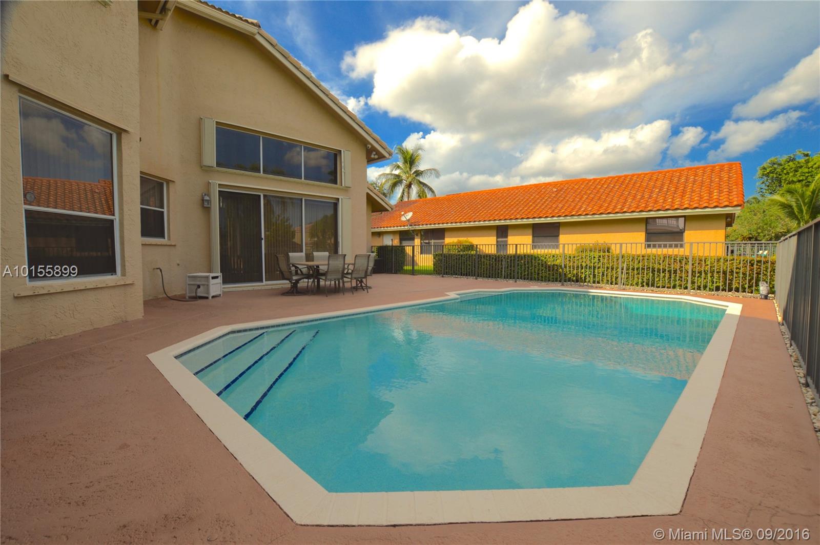 Large, Spacious and Bright- This well kept home is perfect for a large or growing family -4 bedrooms , 3 and a half baths- (1 bedroom with full bathroom downstairs)- Master bedroom is large and has a balcony overlooking the pool and canal-screened in covered patio,- open kitchen and family room, volume ceilings, and large circular driveway. Lush tropical landscaping- Quiet and safe neighborhood, close to schools, worship centers and shopping.