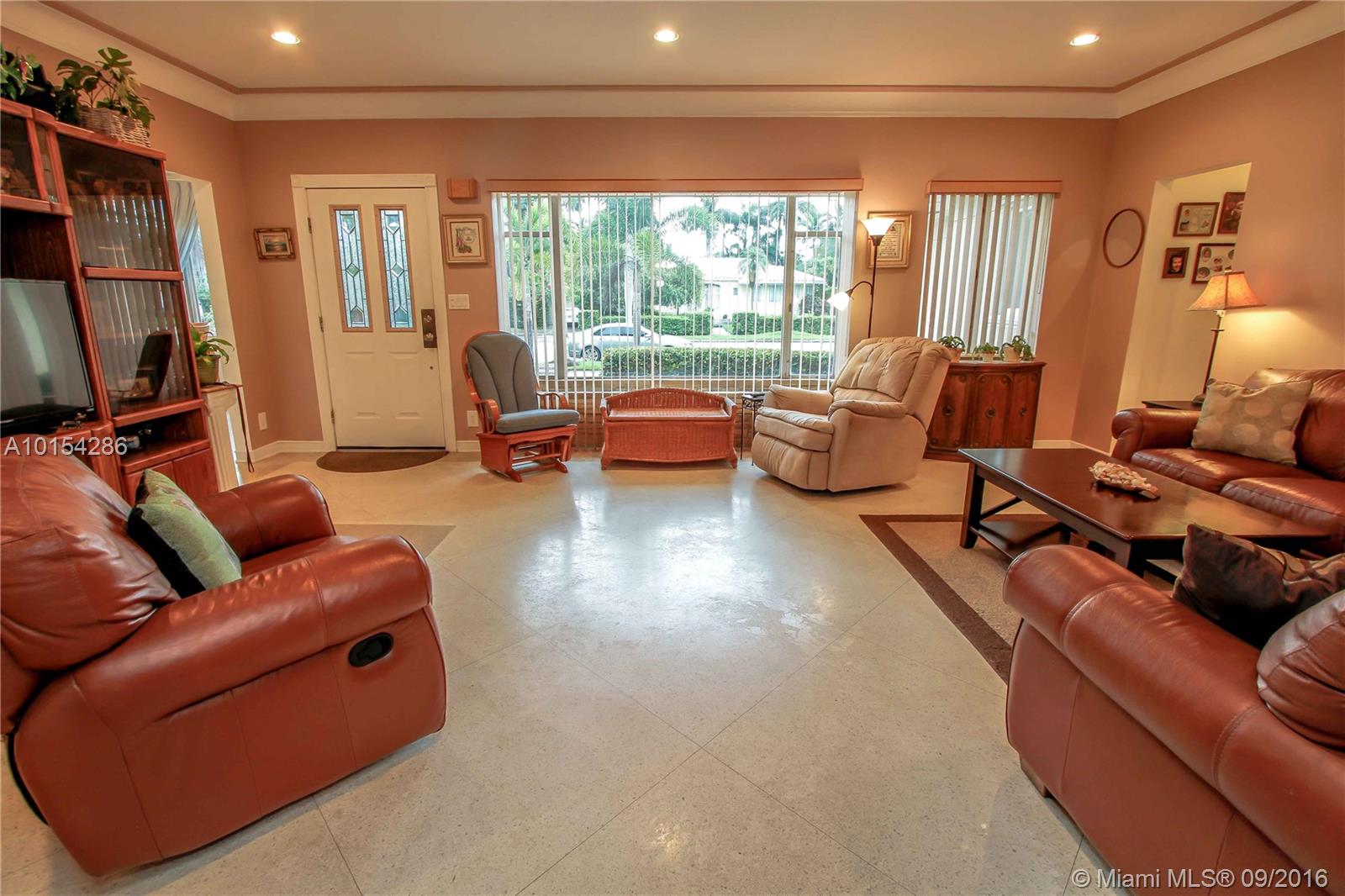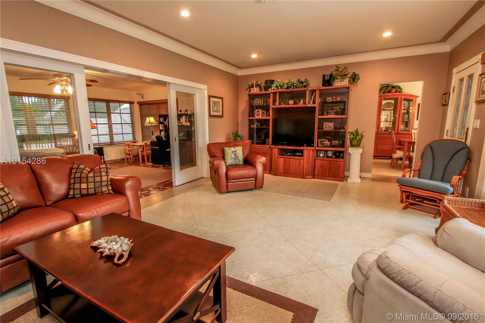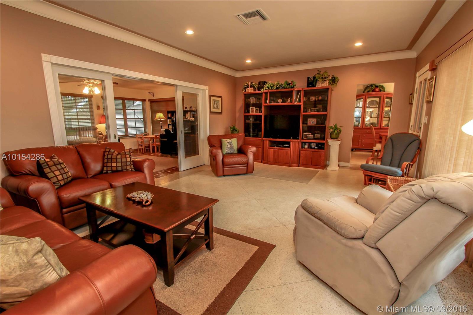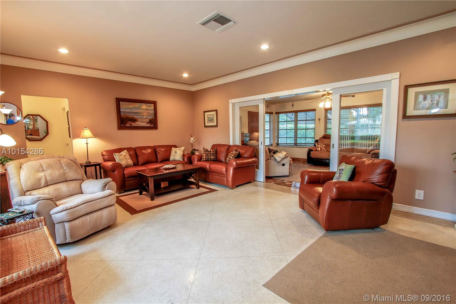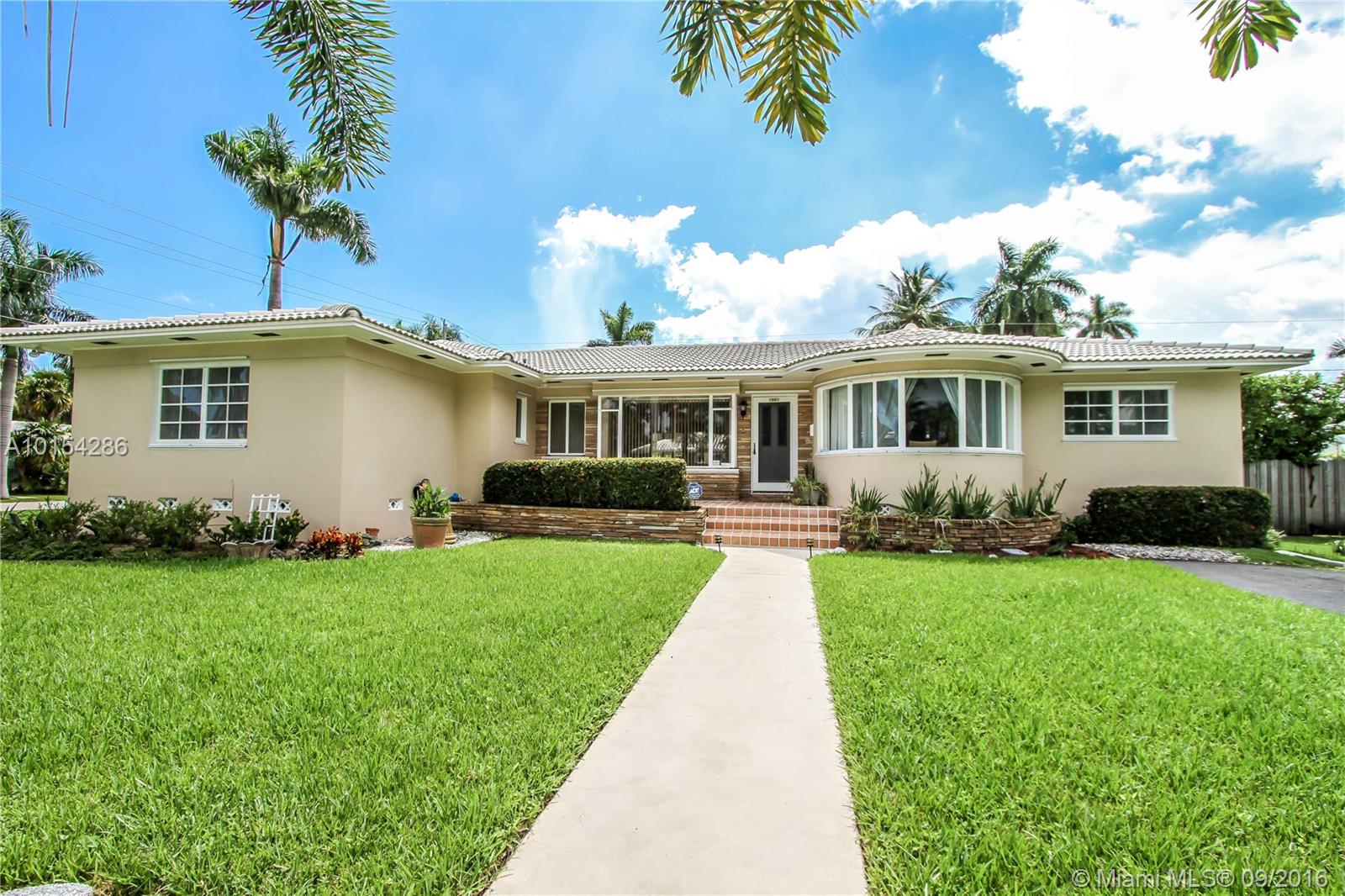 Corner property 3 BR, 3 BA, Bonus room currently used as a gym, laundry room +2 car garage. Open Terrace faces Pool. Double lot. Over sized Eat-in kitchen, granite countertops & White cabinets opens into formal dining room. Large living room. Family room w/Cuban Tile. Terrazzo floors. Spacious bedrooms Walking distance to the beach and downtown Hollywood.