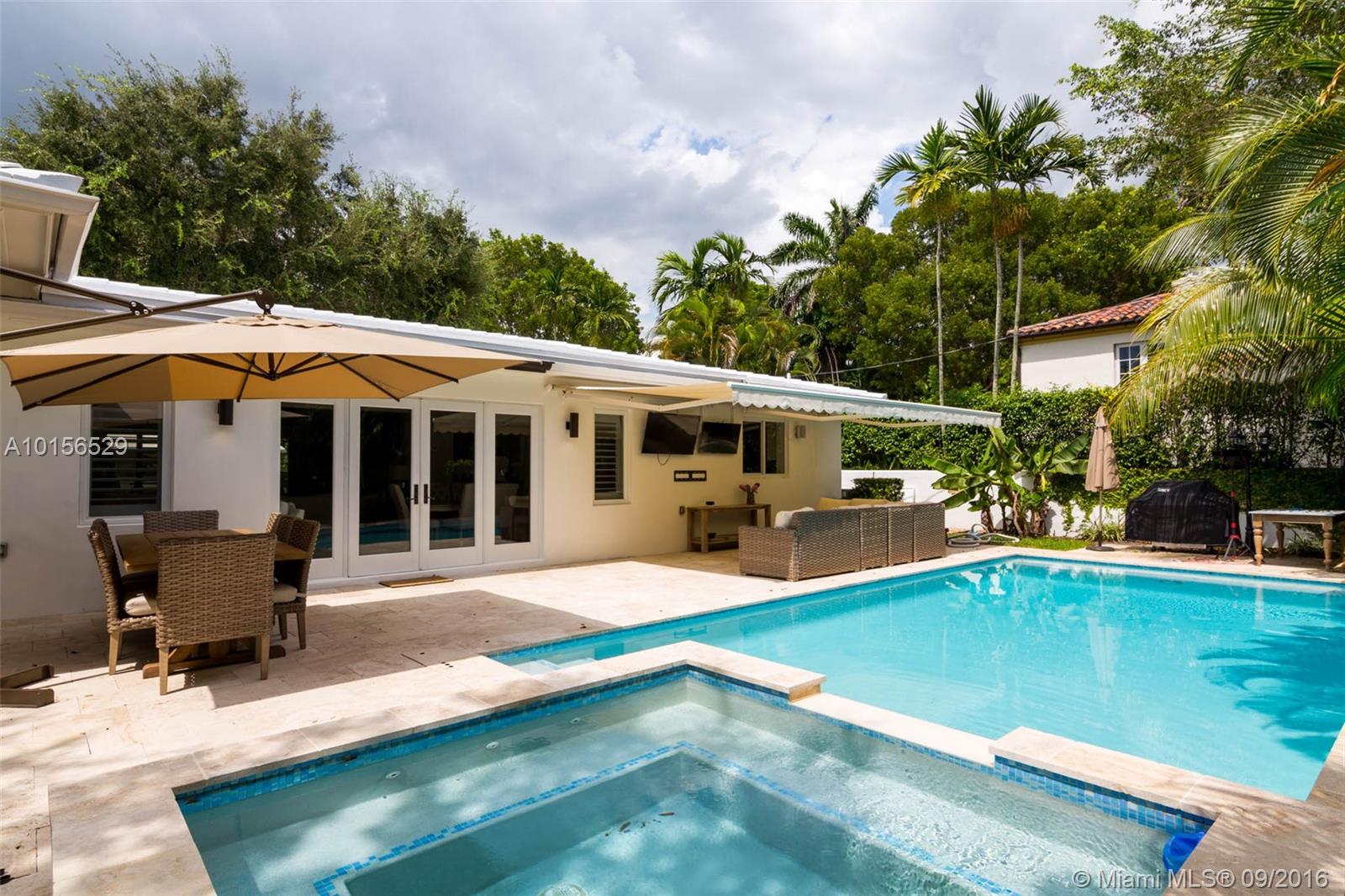 Beautiful 3/2 plus large pool & patio with light, bright & spacious open plan. Situated in prime South Gables on quiet, tree lined, low traffic street. Completely Renovated-2012 All New: impact windows/doors, plantation shutters, high ceilings in living areas, marble in living & baths, wood in bedrooms, AC, plumbing, appliances, LED lighting & surround sound system, landscaping & synthetic grass play area. Located near the best public/private schools & minutes from SoMi, Publix, Whole Foods, Sunset Place.