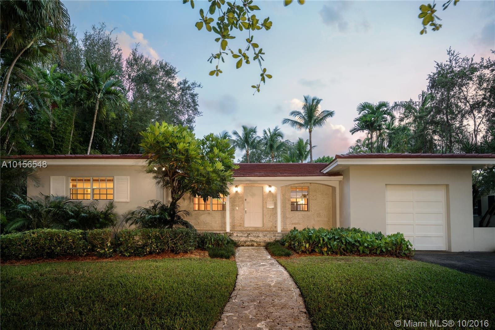 On a quiet, low traffic street in Coral Gables' prized "Golden Triangle" neighborhood close to the Library & Youth Center, the Venetian Pool & the Biltmore Hotel, find this roomy (close to 3000 square feet) 3 bedroom 3 bath 1950's home with high ceilings, gleaming oak floors, walls of glass doors looking out to a tropical paradise with a dreamy lagoon style pool with waterfall on a 10,4250 sq ft lot. Needs updating in kitchen & baths but very large kitchen & and master bath spaces to work with. Garage,