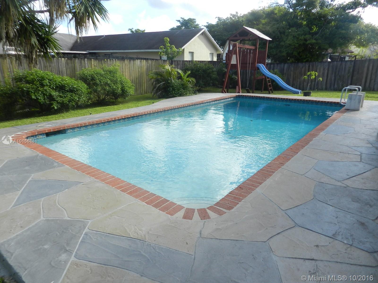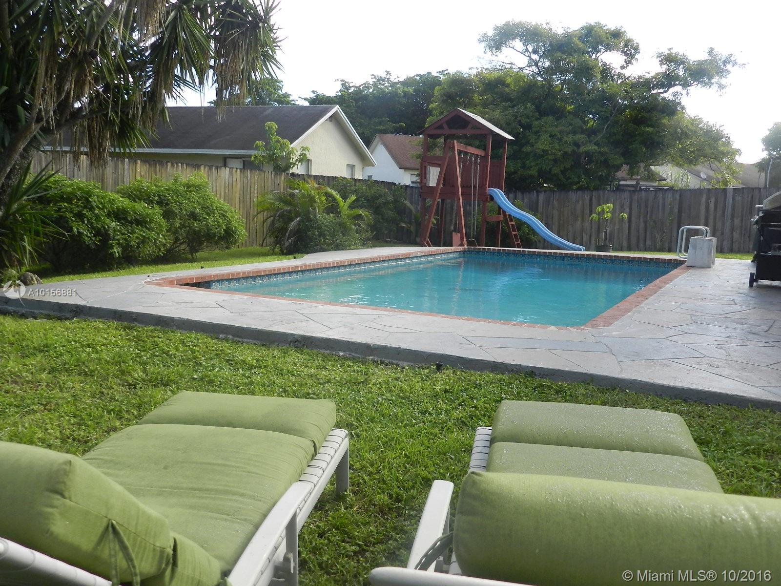 Wow! Gorgeous pool home in Cooper City! Home is in move in condition! *Remodeled kitchen with wood cabinetry, glass accents, granite counters, & built in pantry *Both bathrooms remodeled *Split floor plan *Wood laminate flooring & 18" neutral tile throughout *Covered screened patio overlooking pool *Large fenced yard perfect for social gatherings *Freshly painted exterior *Double gate on side for boat/RV parking *Amazing neighborhood w/ NO association fees! Walking distance to local park/playground area!