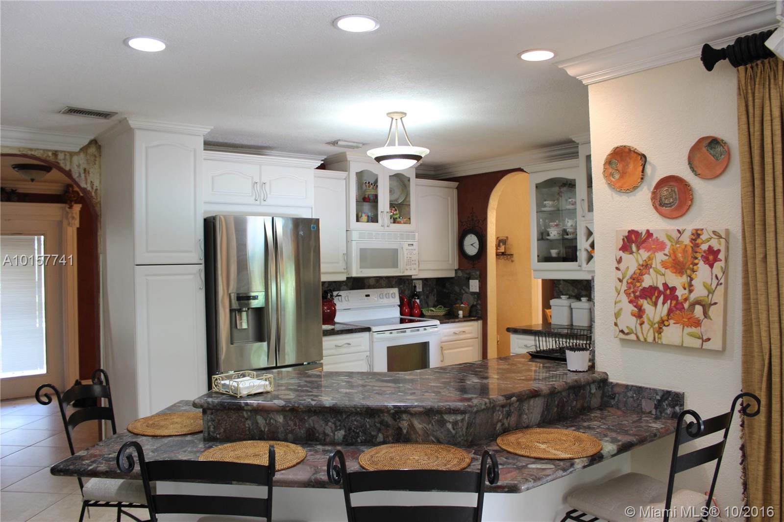 Beautiful 3/2 with a pool surrounded with a lushly landscaped yard with lights. Covered patio. Feels like paradise. Free standing workshop in the backyard. Totally remodeled kitchen and bathroom. Walk up ladder to a spacious attic area. Automatic electric panel for the pool. Electric panel for your holiday decorating with a flick of a switch! Split floor plan. One of the best schools in Broward county, walking distance to school. Master bath has a shower and jacuzzi tub. Hurricane panels. Move in ready!!!