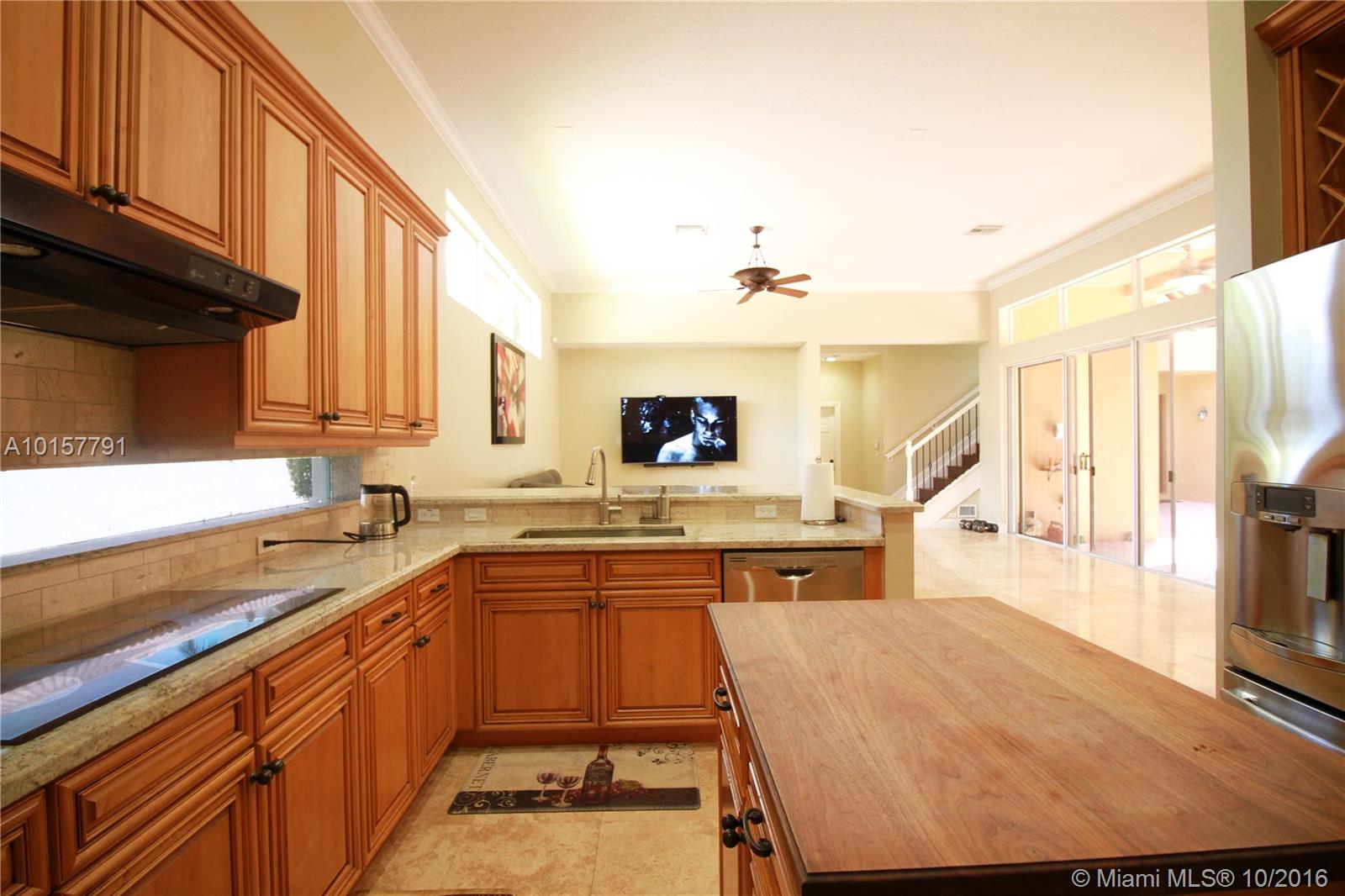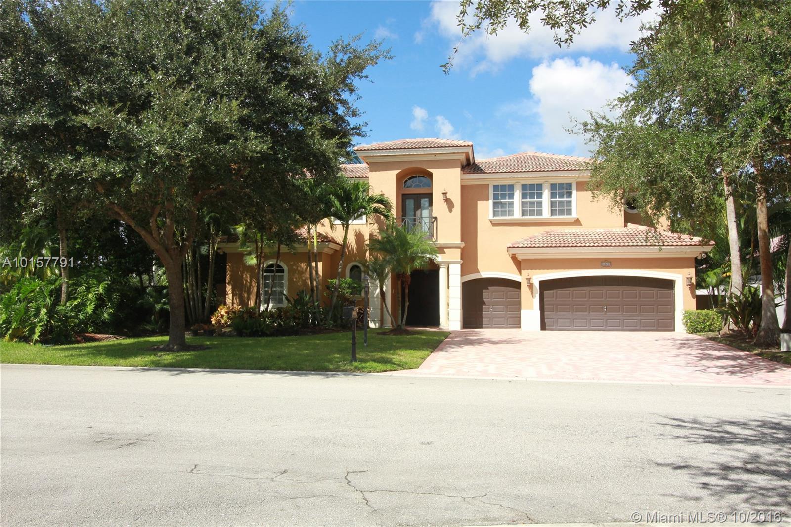Gorgeous home in The Estates. Courtyard entry. Marble & new wood floors. Filled with interior upgrades. Marble & Hardwood floors. Master Suite on 1st floor. Guest house with bedroom & full bath. 42" wood kitchen cabinets with granite counters, stainless appliances. Very spacious living areas that overlook tropical pool. Upstairs has a loft, 3 bedrooms and 2 full baths. 3car garage. Crown molding. Light & bright! 2 Clubhouses with resort pools, gyms.