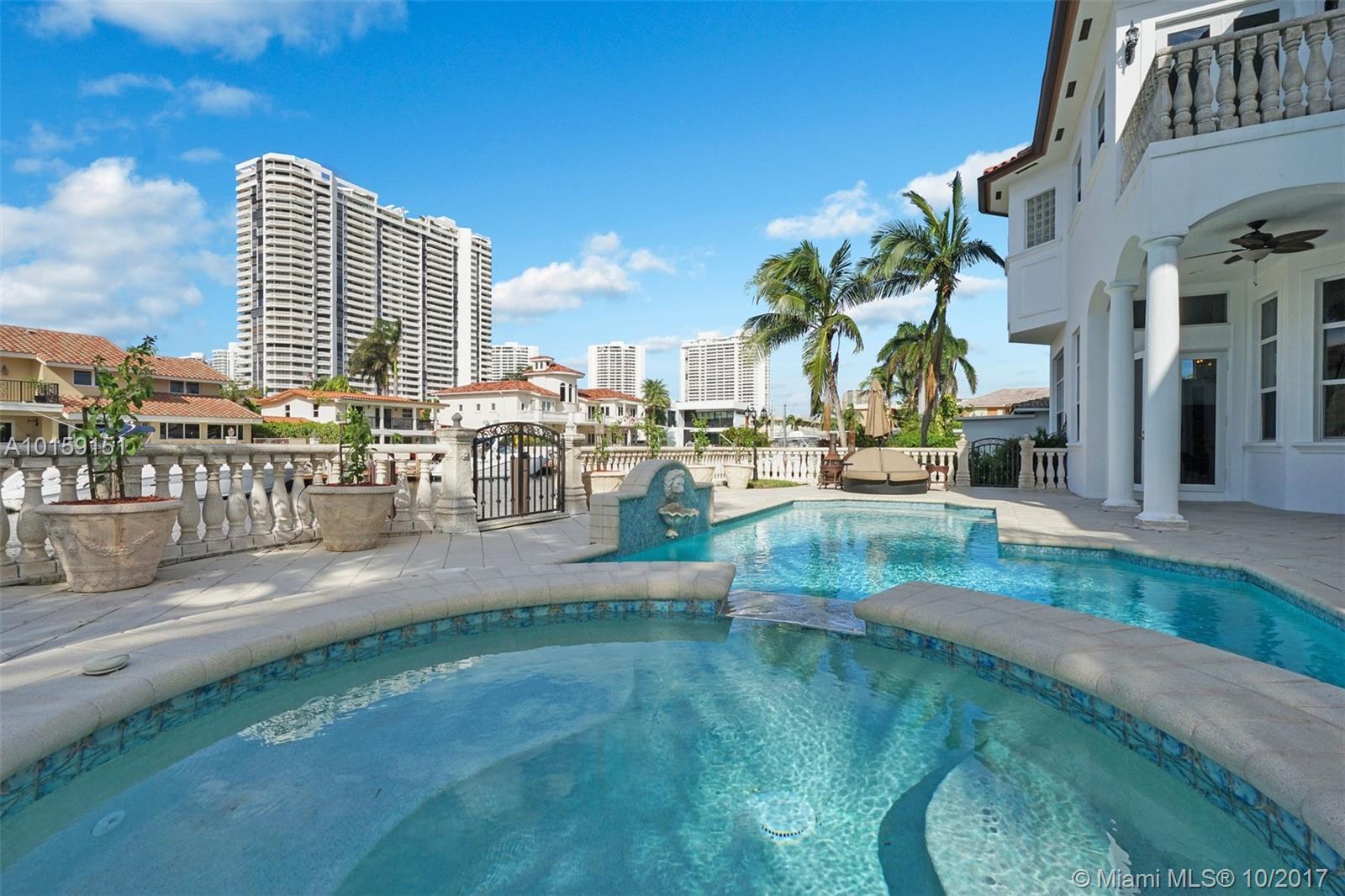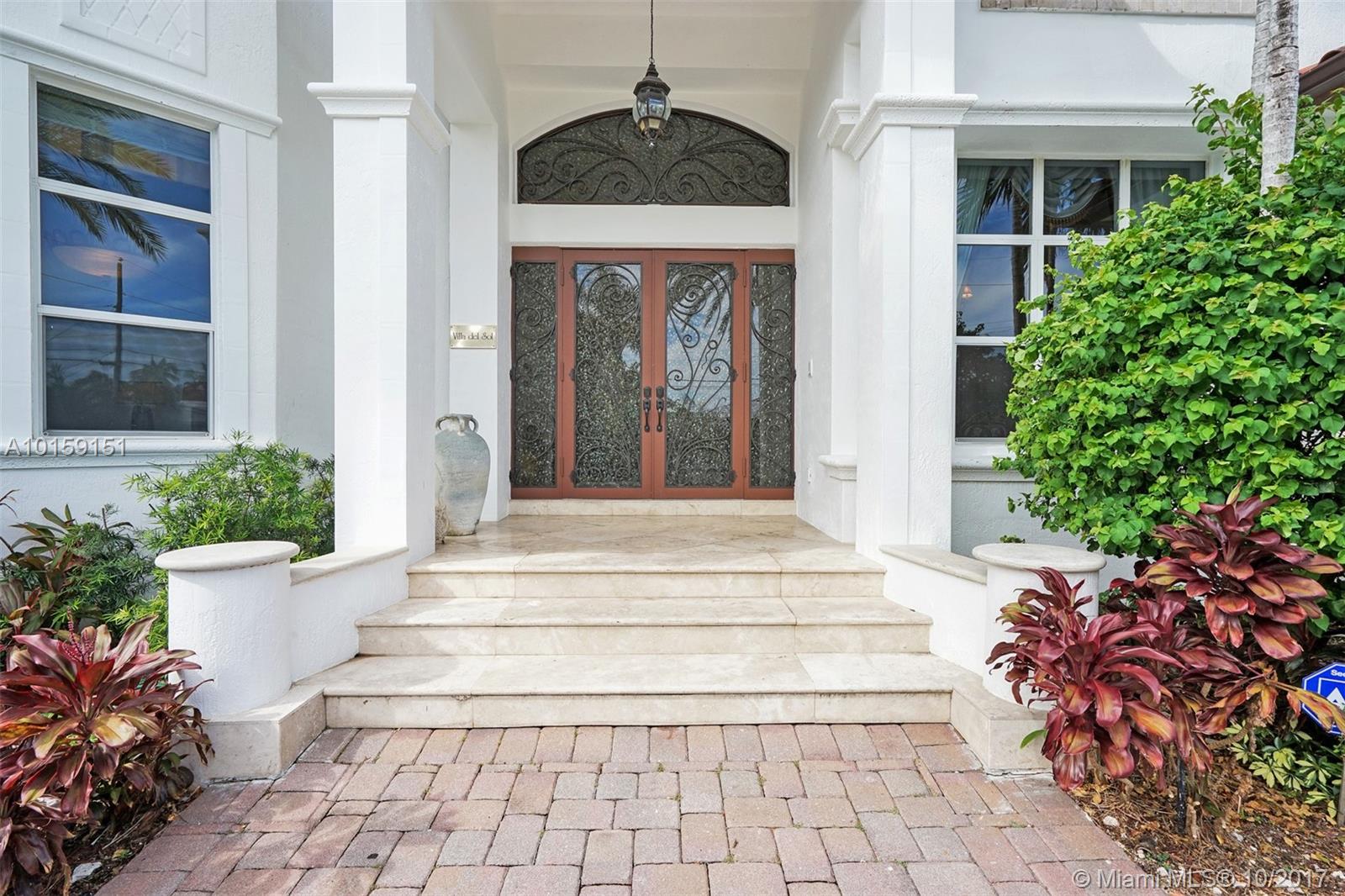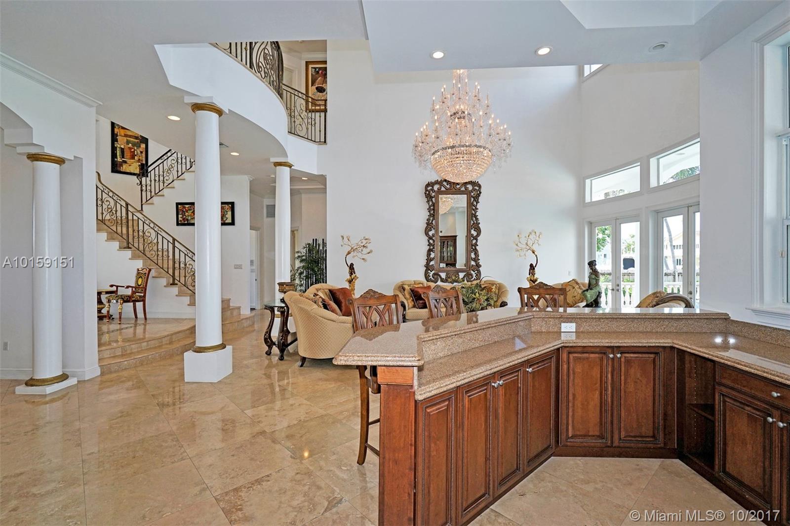 Magnificent 2 story Mediterranean-style waterfront estate w/ 80ft dock no fixed bridges to the ocean access, built in 2003 with many custom features throughout. This 5bdr 4 1/2bath property has open & spacious floor plan with grand foyer, elevator, vaulte d ceilings, columns, gourmet kitchen w/ custom cabinetry, grand master suite,office, Media room h/pool,Jacuzzi, 3 car garage. This property is located in the guard-gated community of Eastern Shores.