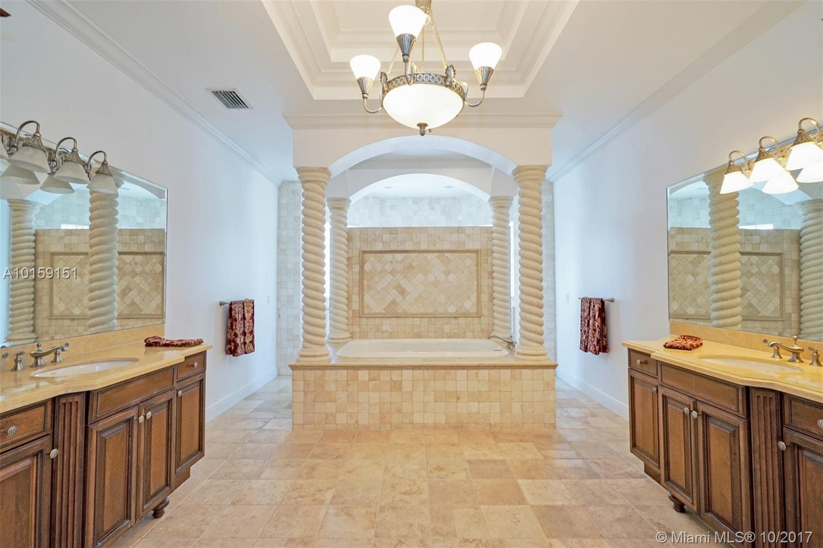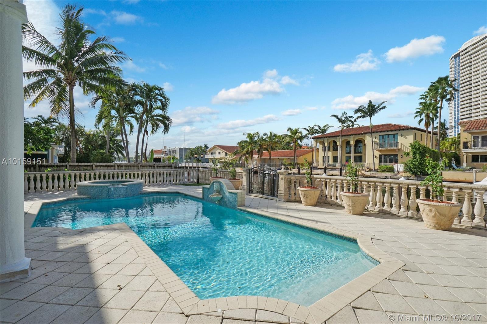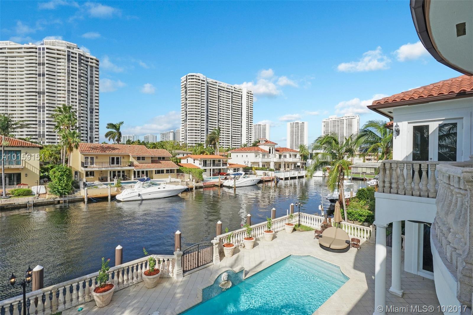 Magnificent 2 story Mediterranean-style waterfront estate w/ 80ft dock no fixed bridges to the ocean access, built in 2003 with many custom features throughout. This 5bdr 4 1/2bath property has open & spacious floor plan with grand foyer, elevator, vaulte d ceilings, columns, gourmet kitchen w/ custom cabinetry, grand master suite,office, Media room h/pool,Jacuzzi, 3 car garage. This property is located in the guard-gated community of Eastern Shores.