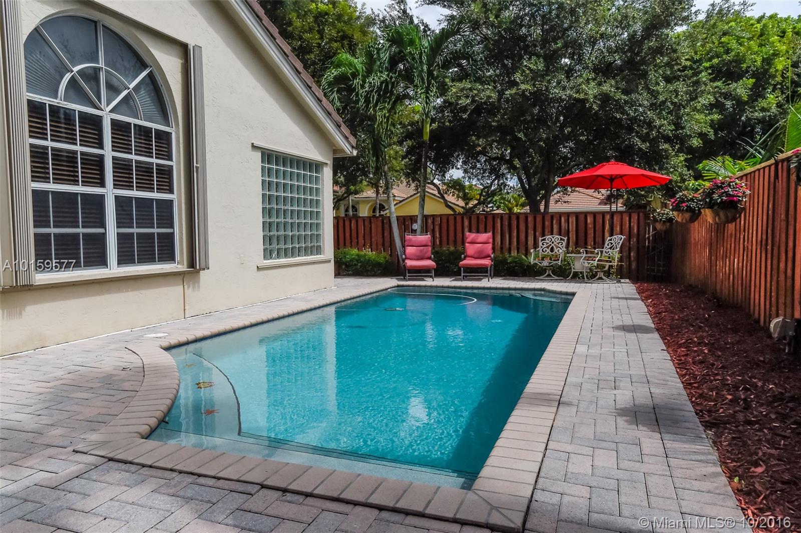 This beautiful home sits on a huge corner lot and You will feel at home the minute you walk through the front door. Volume ceilings and wood floors in the living room.Stainless steel appliances,silestone counter tops and Honey Maple wood cabinets in the kitchen.Gigantic master with Roman tub and walk in closet.A screened in Florida room with sliders lead you to the tropical pool and patio area that's great for entertaining. A rated schools, 24 hour security, 2 huge swimming pools, gym, tot lots and more.
