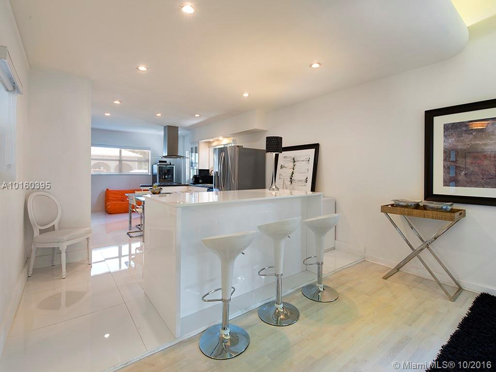 Best buy In Bay Harbor Islands! Sleekly renovated & move-In ready steps from shops, temple, beach. Pristine open LR/DR/FR w/beamed soaring ceilings, whitewashed maple floors & large glass doors leads to pool/hot tub w/shower & expansive deck In private, fenced yard. New kitchen w/glass porcelain tile floor, quartz & black granite counters, gas range, SS appls. 2 new designer baths. 3 large beds, master w /dressing room. Updated electric. A/C 4 years. Some Impact windows. Flexibility to customize/expand.