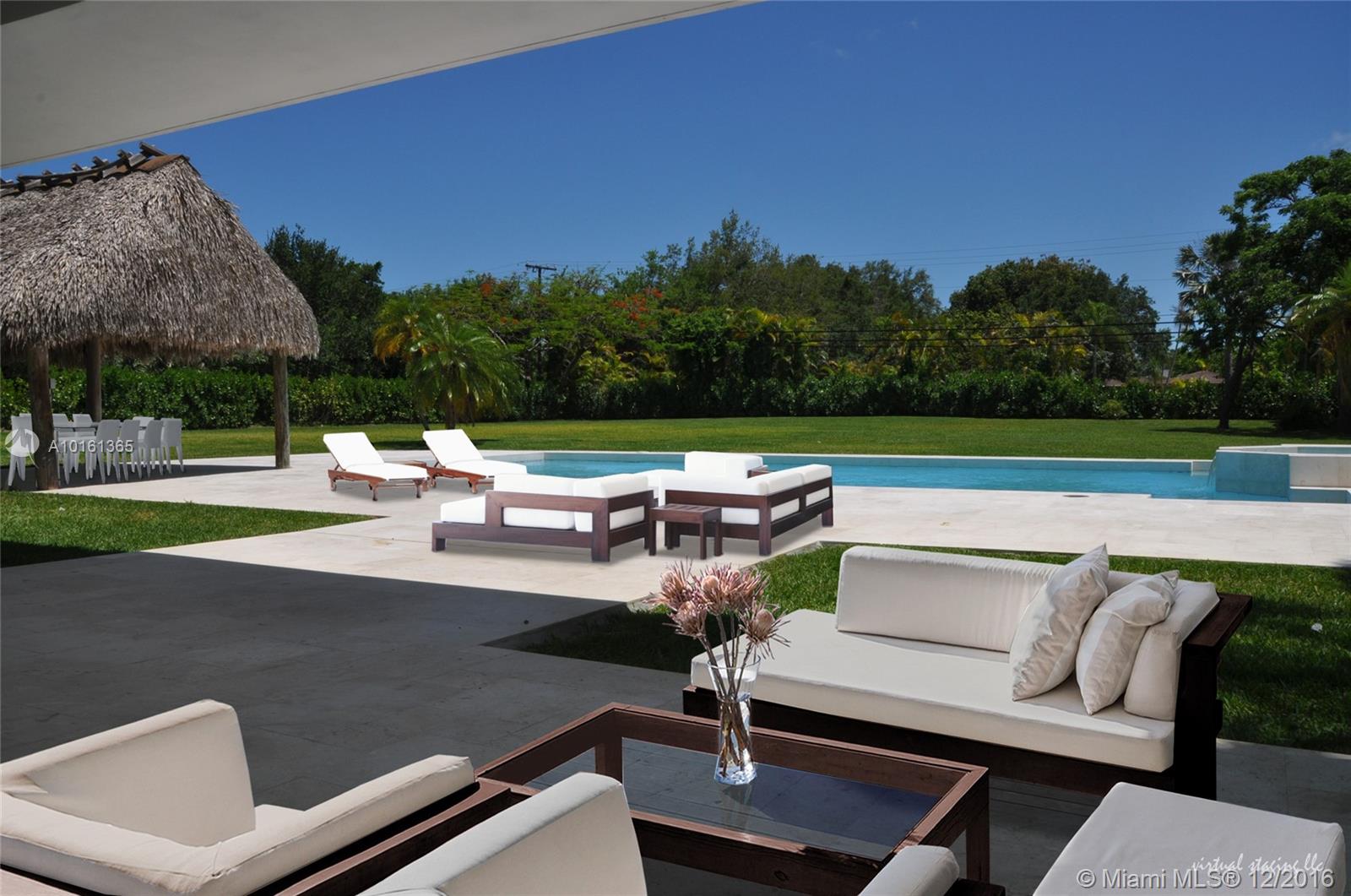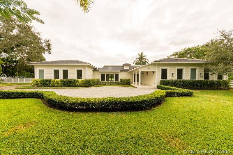 Luxe-modern, brand new, 6 bd/4 ba, 1 acre Pinecrest Estate. New electrical, mechanical, & plumbing. Chef's kitchen features quartz countertops, Hans Grohe fixtures, state-of-the-art appliances(subzero, Wolf, Miele). 2 bd are master suites, plus 2 offices (study room + craft room), white marble floors. Dramatic impact windows/doors creating a seamless integration of home's green spaces. Pre-wired smart home. Expansive backyard w/pool & spa, limestone deck and tiki, perfect for chic Miami soirees.