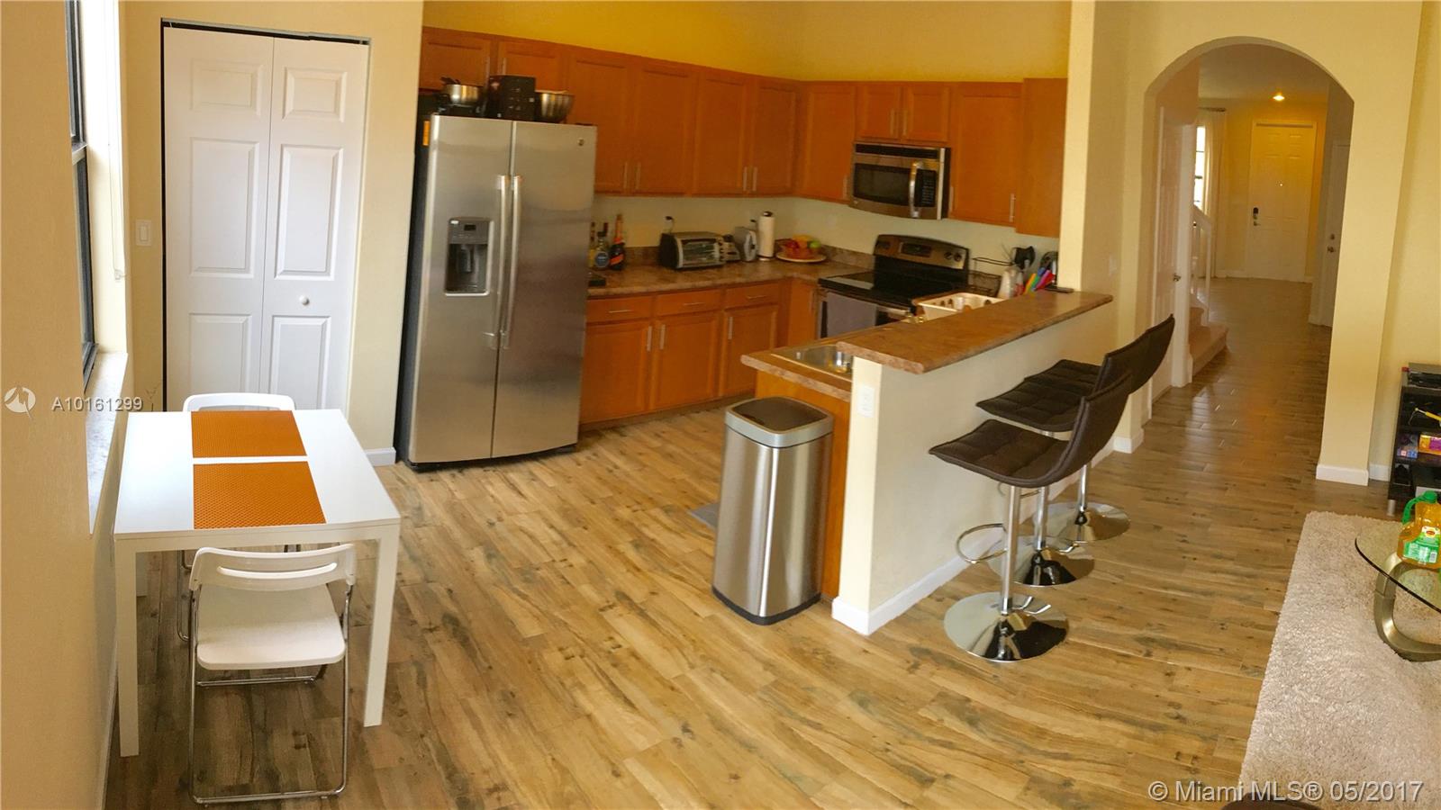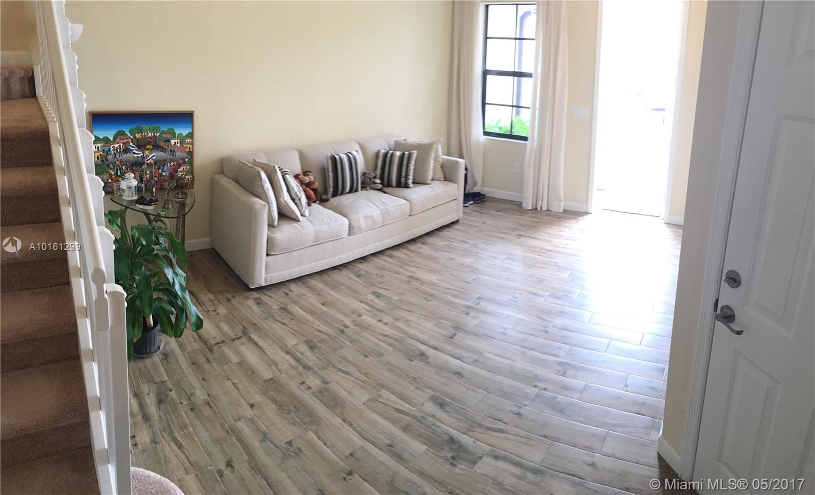 BONUS $3.500 TO BUYER'S AGENT AT CLOSING PLUS $3.500 AS SELLER'S CONTRIBUTION TO BUYER'S CLOSING COSTS WITH FULL PRICE OFFER ONLY. MOTIVATED SELLERS. 4 Beds - 2.5 baths townhouse in the peaceful community "Aragon/Bellagio". Wood alike ceramic floor on the first floor (the only one available with this gorgeous type of floor). Carpet upstairs. Stainless Steel Appliances (Upgraded Refrigerator). Delicate and high standard landscape in the backyard. Owners paid extra for oversized patio. Must See!