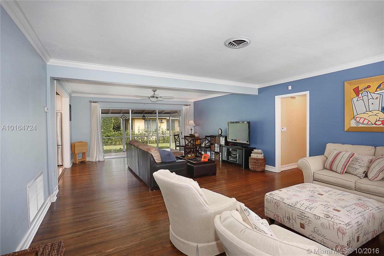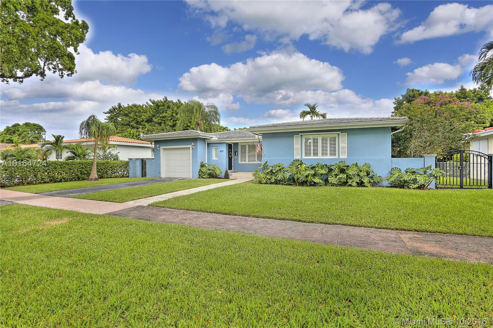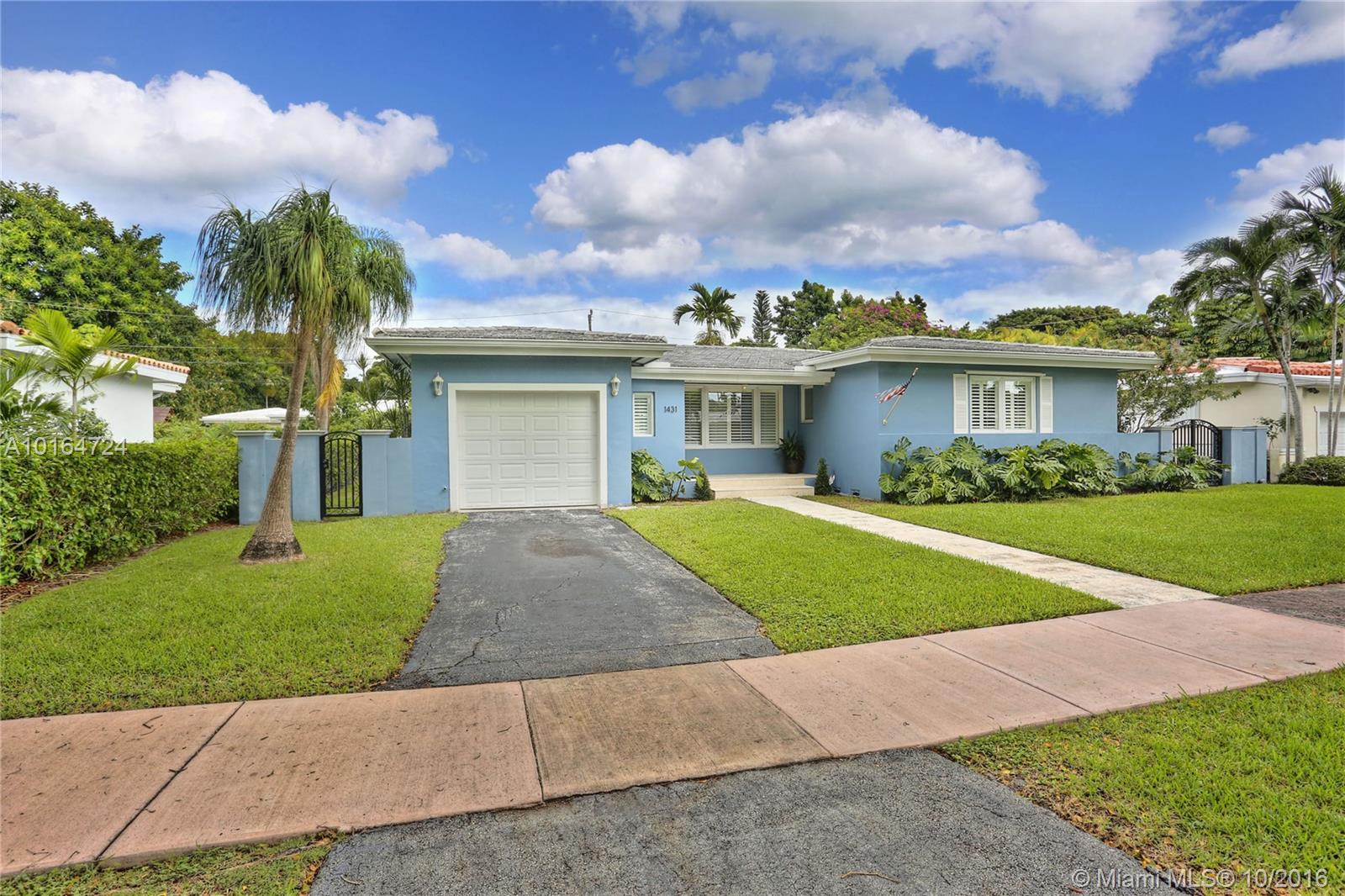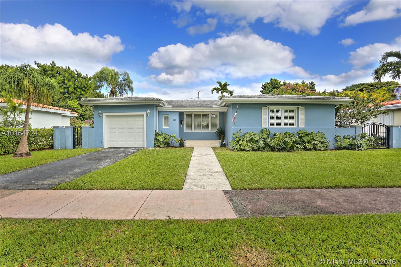 This absolutely gorgeous home has been beautifully and lovingly updated and is situated ideally in the heart of the Gables. The home features open living and dining area, refinished and stained hardwood floors throughout, beautifully renovated marble kitchen with stainless appliances, lots of storage & open feel, gracious bedrooms & 2 renovated baths. Also notable are the impact windows, spacious lot w/ room for a pool, screened patio and 1 car garage. This home is immaculate and truly special!
