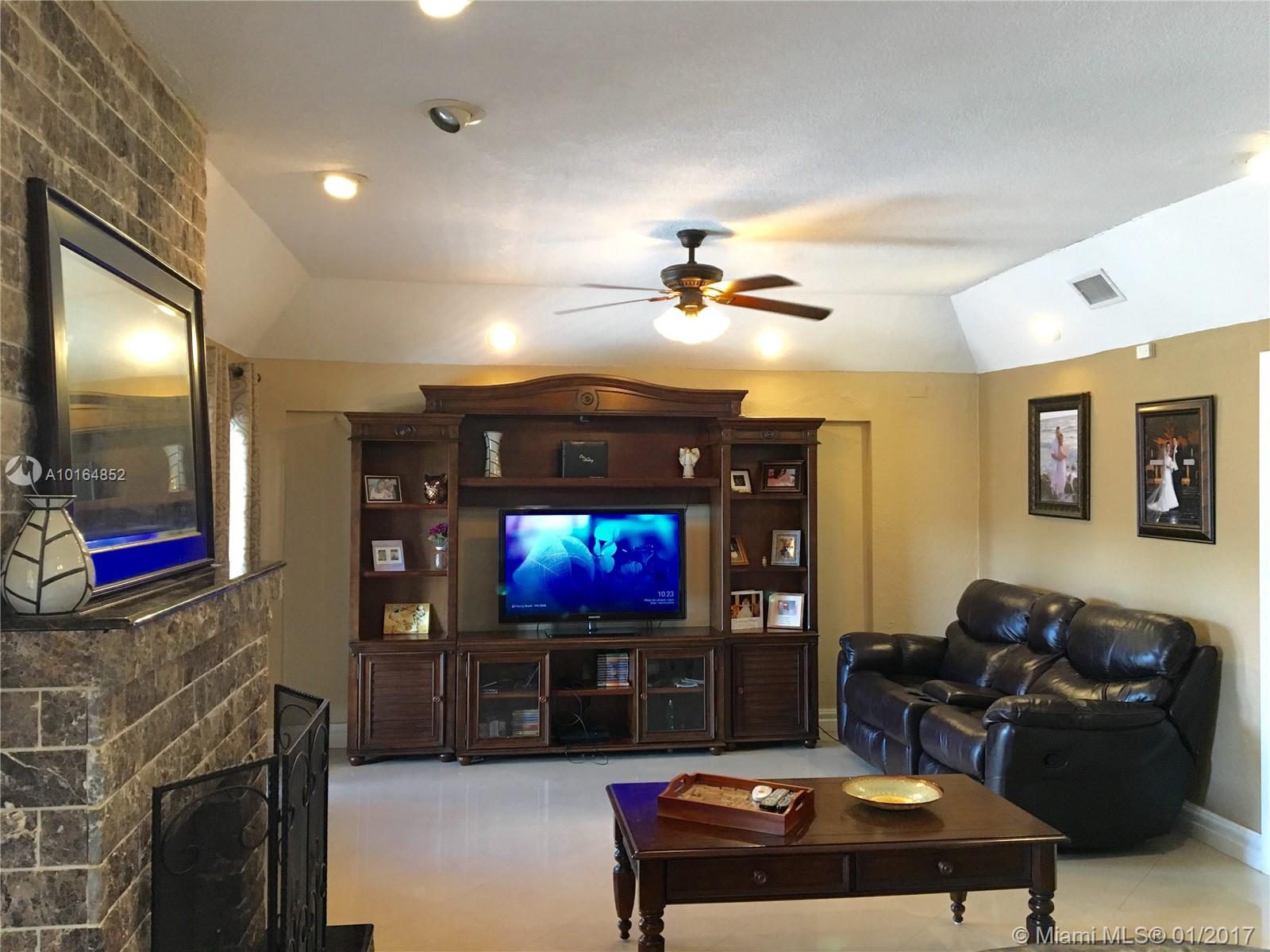 Beautifully updated home in Palm Springs North (two blocks from Miami Lakes), equipped with top of the line stainless steal appliances and granite counter tops. Master bedroom features large walk in closet with built in storage. Spacious living area featuring a granite and stone fireplace with two French doors leading out to paved backyard, salt water pool and spa, great for entertaining and with enough room for a boat. Dream home!