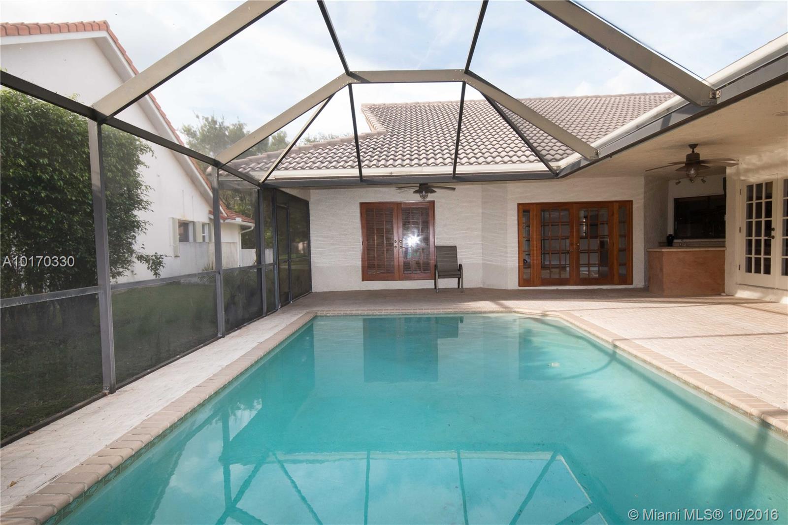 Incredible gorgeous and impressive 1 story home in lush gated development in Coral Springs. Extremely spacious 4/3 w/family room/fireplace. High volume ceilings, foyer,formal living & dining rooms. Exquisite split master suite w/roman tub. Also large bedrooms split with Jack/Jill bath and then another split bedroom & bath for maids/guest quarters. Like new remodeled stunning kitchen w/island & breakfast area. Most all rooms have French doors out to the huge covered screened pool/patio w/large fenced yard