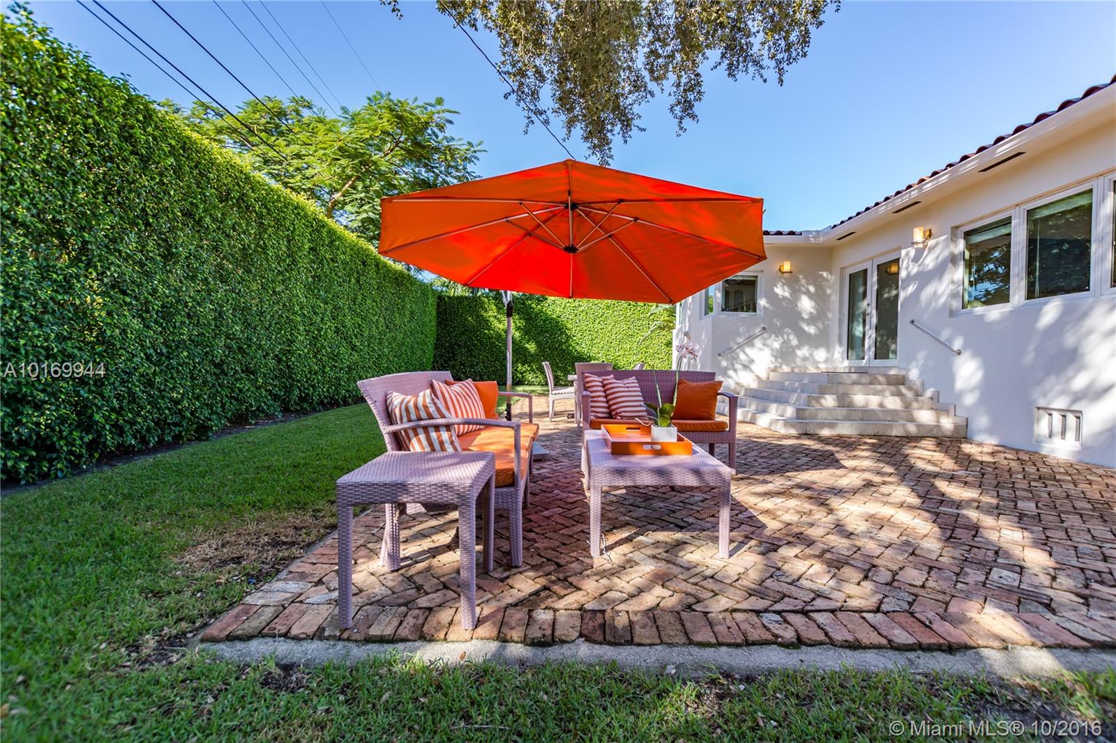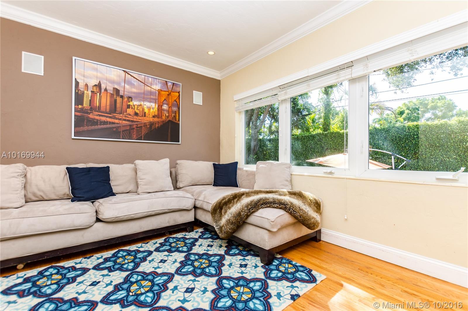REDUCED TO SELL! Central Coral Gables LOCATION! Roomy and meticulously maintained home with features including:wood floors throughout,impact windows, new A/C, and 8,000 square foot lot (plenty of room for a pool) with Chicago brick pavers patio surrounded by a high dense hedge giving tons of privacy, excellent for entertaining. More sq.ft than tax roll says Driveway allows for 4 cars plus tons of Residential permitted street parking available. Walking distance from Miracle Mile & newest development.