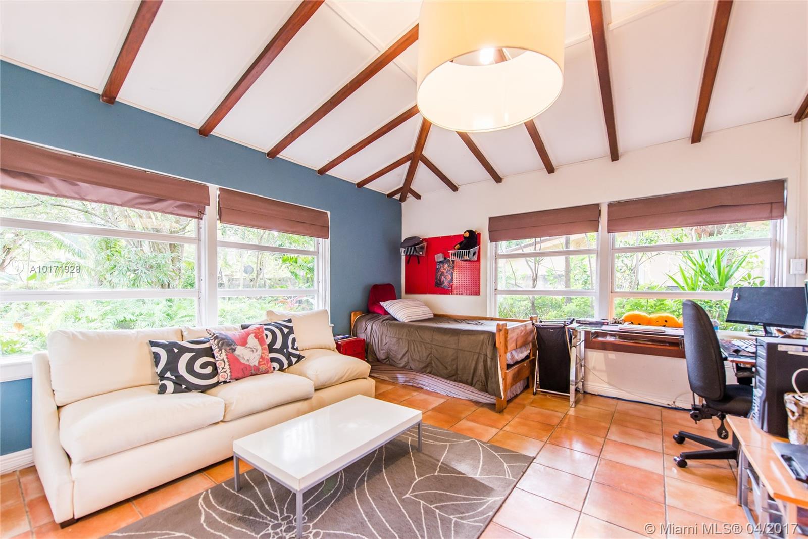 This is a home with charm and personality! A unique 4/3 home on a magnificent acre on historic Old Cutler Road. The lush, tropical landscaping, thoughtfully planted by owner, provides a magical backdrop for the architecturally interesting home. Windows abound providing excellent light and unending views of the gardens and zen pool and patio. Spacious kitchen with wood beams and vaulted ceilings adding tons of warmth. SqFt larger then tax roll per owner! Don't miss this opportunity to live in paradise!