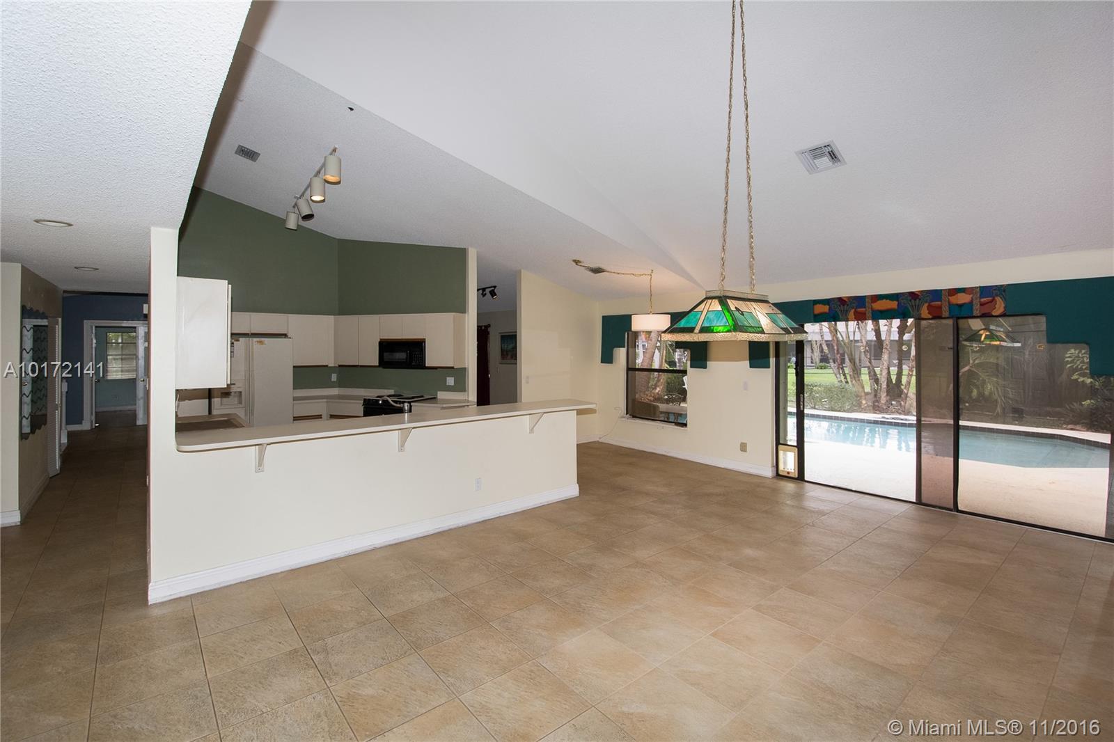 Sought after oversized 4 bed full 3 bath waterfront pool home in Cooper City. Master bedroom is located on the first floor along with another bedroom and full bath. The home boasts a large kitchen with breakfast area that opens to a family room with a wet bar, perfect for entertaining. The main living and dining rooms have vaulted ceilings. The extended master suite has two large walk-in closets and a dressing area not featured in other models.Newer roof, new AC 2016 and 2 new hot water heaters.Needs Work