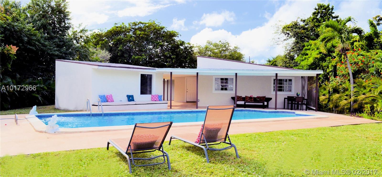 Exceptional Architectural designed home located in Griffing Biscayne Park Estates. Home features vaulted ceilings, over sized pool w/separate pool house, huge yard, excellent for entertaining friends and family! The property has SS appliances, new kitchen w/skylight, granite counter tops, new central A/C, new water heater, travertine and porcelain floors, renovated baths, storage shed, gated private entrance driveway and much more! Split floor plan. Large MB walk-in closet! 15,000 Sq ft of fenced yard!
