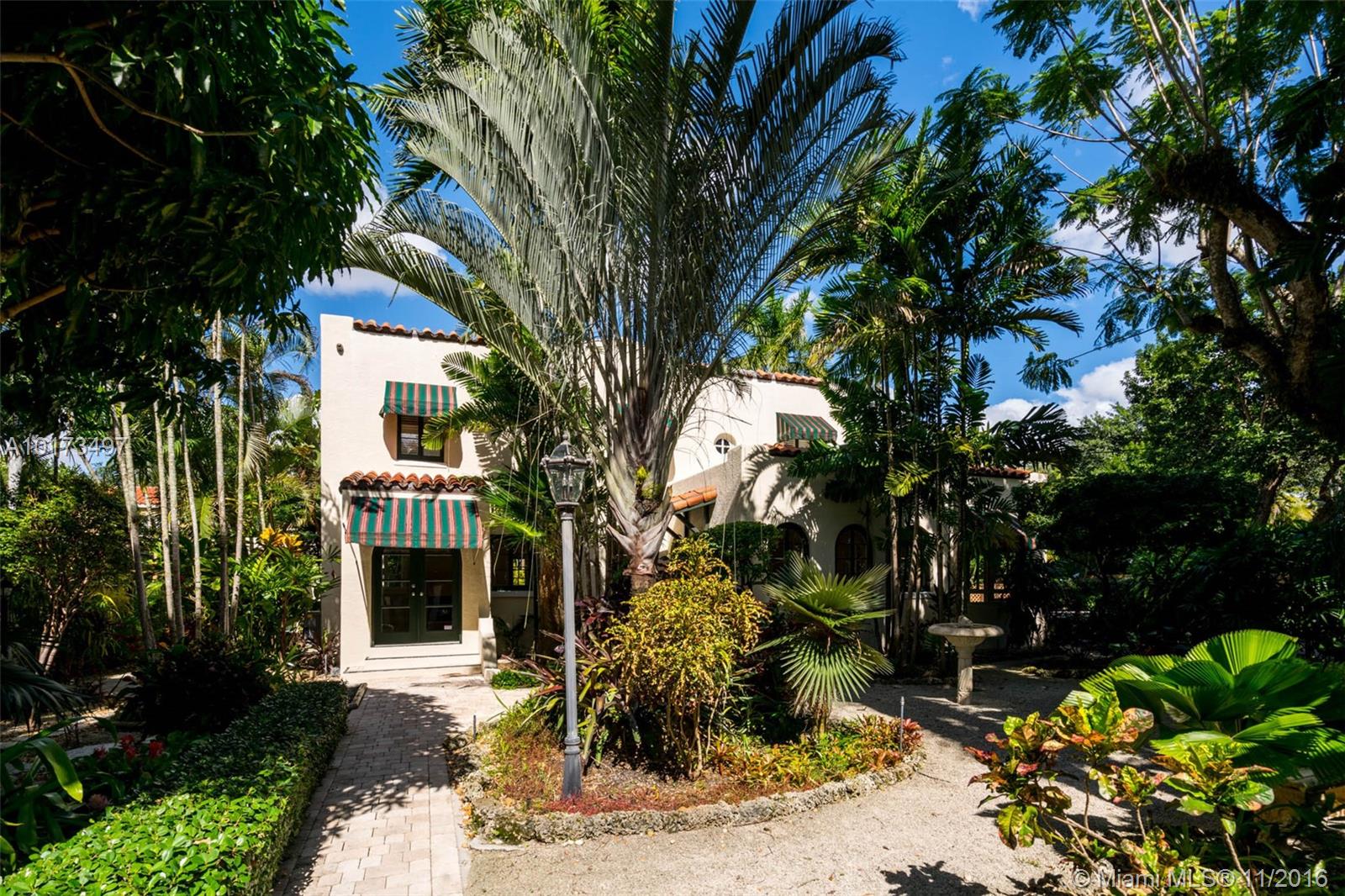 Enchanting, fully gated and private home located in Coconut Grove, one of Miami’s most historic and lush neighborhoods. The 3,253 square foot home features a main house with 3 bedrooms, 2.5 bathrooms, and bonus room, plus a 1/1 guest cottage surrounded by spectacular tropical gardens and an outdoor deck space and pool perfect for entertaining. The 14,300 square foot property contains flawlessly manicured landscaping and charming Old Spanish architecture--quintessential Grove at its best.