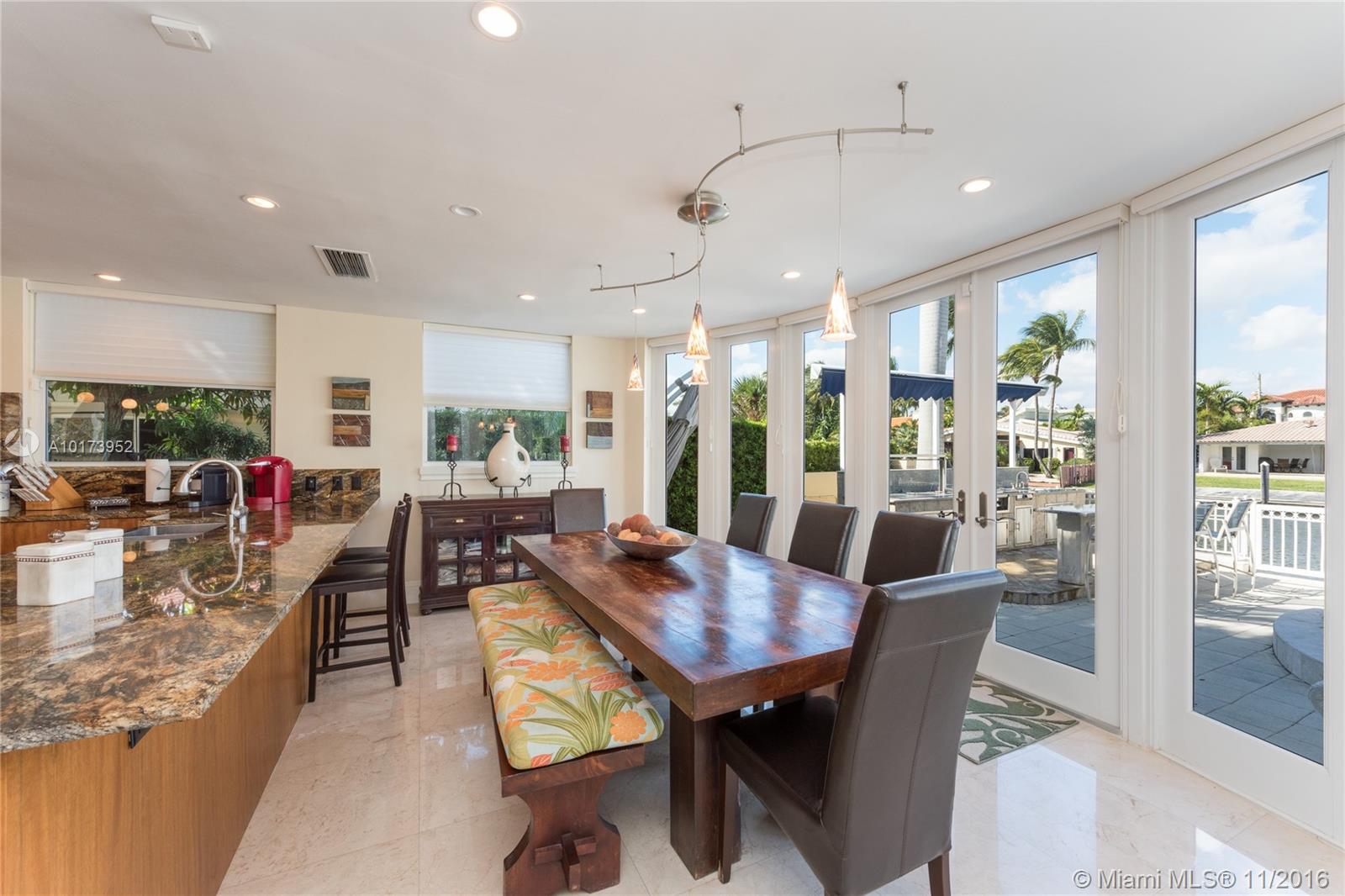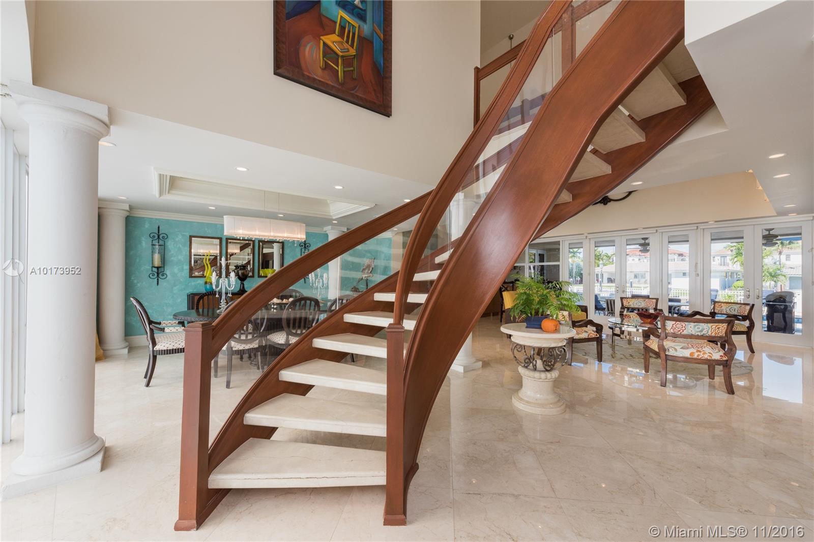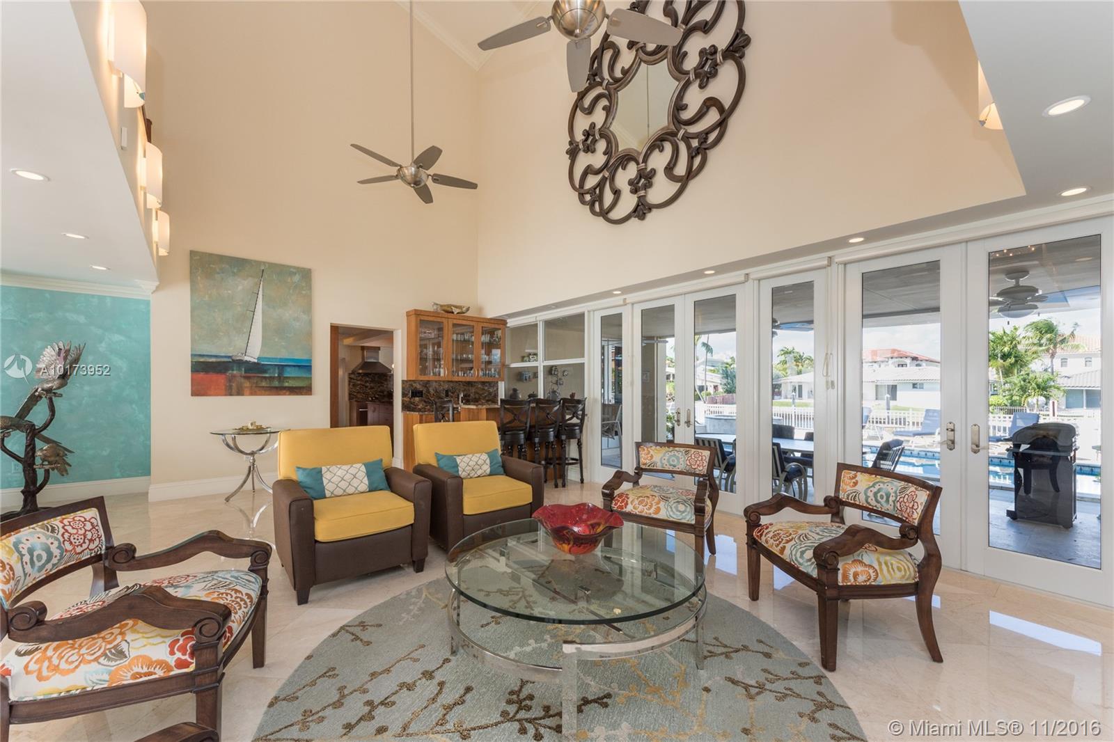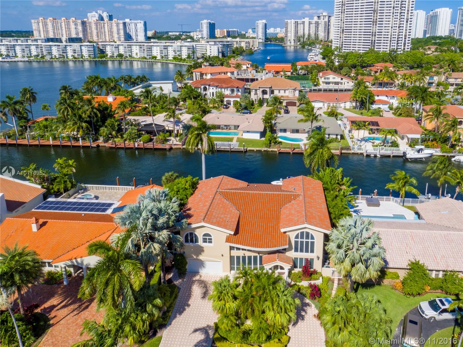 2 STORY WATERFRONT CUSTOM MODERN HOME IN GUARD-GATED COMMUNITY. DIRECT OCEAN ACCESS W/ NO FIXED BRIDGES TO HAULOVER INLET. RECENTLY RENOVATED APPROX 6 YEARS AGO. APPOX 20 FT HIGH CEILINGS IN LIVING & FAMILY RM. BEAUTIFUL EAT-IN KITCHEN W/ ISLAND. LARGE PATIO AREA W POOL/SPA AND BUILT IN BBQ AREA. VIEWS OF THE WATER AND DOCK AREA FROM ALL BEDROOMS, LIVING RM & KITCHEN . 2 CAR GARAGE. IMPACT WINDOWS, NEWER ROOF. CREMA MARFIL MARBLE THRU-OUT & WOOD & MARBLE FLRS IN BDRMS. GENERATOR & 6 CENTRAL A/C SYSTEMS.