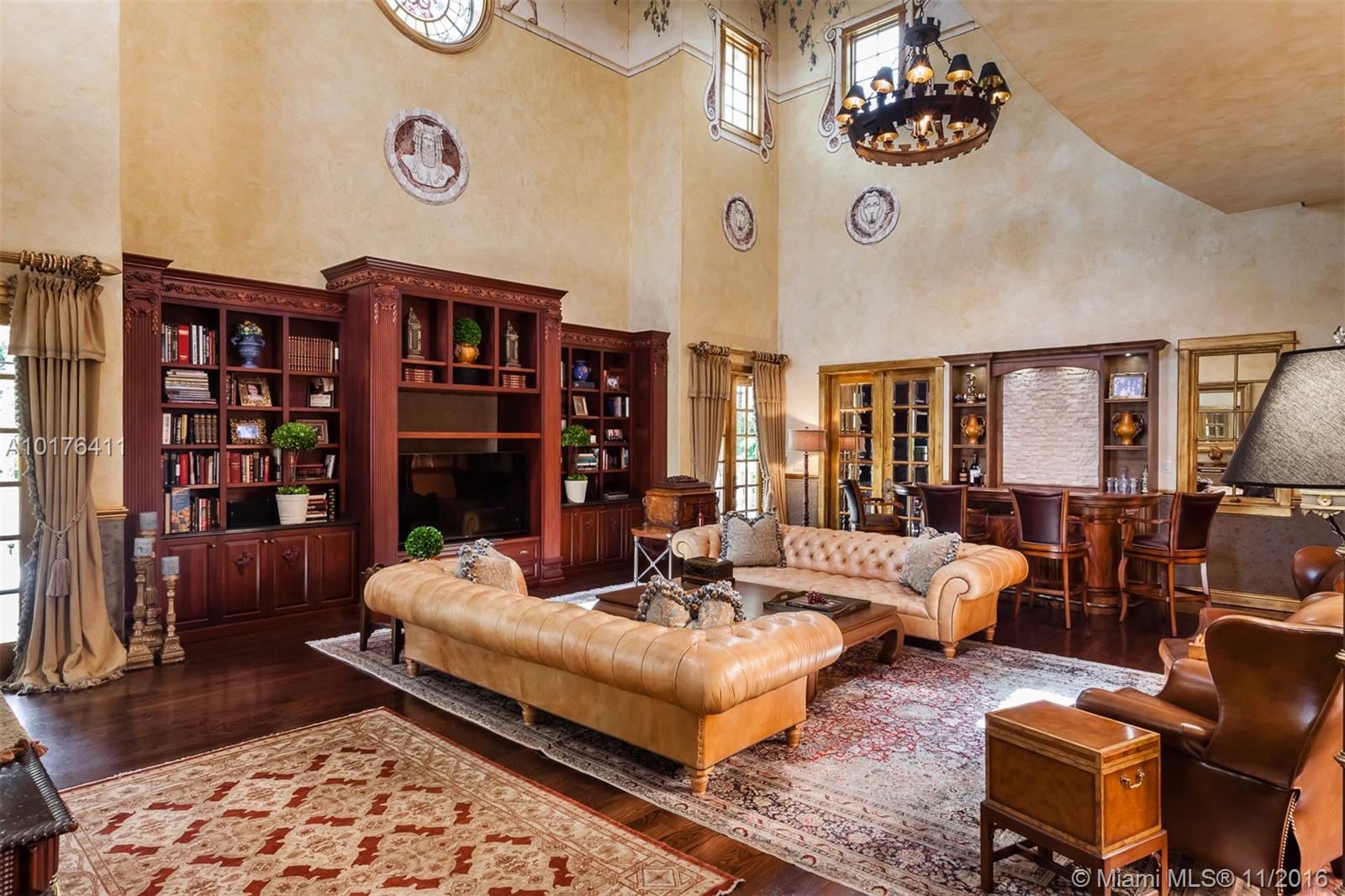 This spectacular Tuscan estate sits on a 41,320 sf lot in the esteemed private guard-gated community of Tahiti Beach. Set amongst a lushly landscaped garden and sparkling pool, the home provides a serene setting for entertaining or relaxation. Exquisite design details are exemplified throughout, including the grand family room with 38 ft. ceilings, master bedroom with sitting room and en suite bathroom and an incredible three room wine cellar. Community amenities include a private beach & 3 tennis courts.