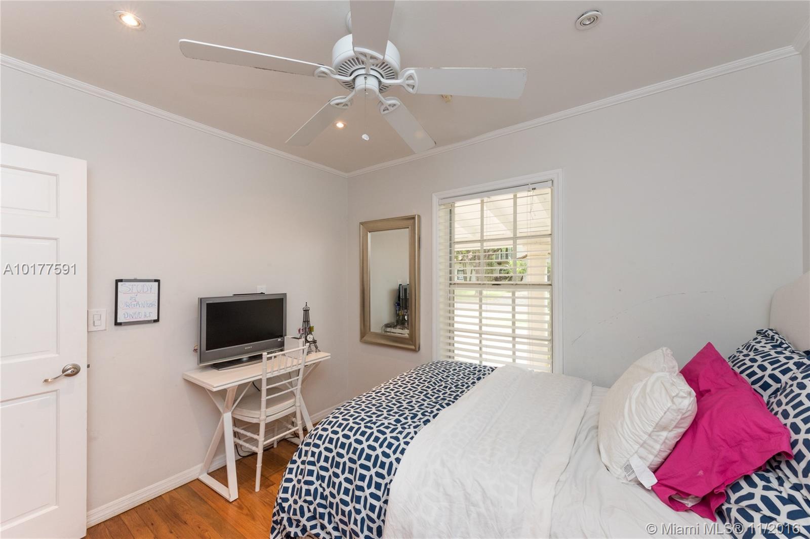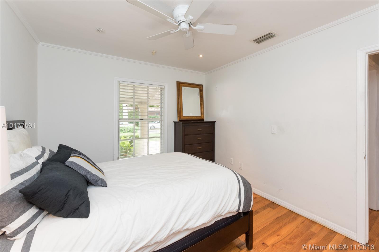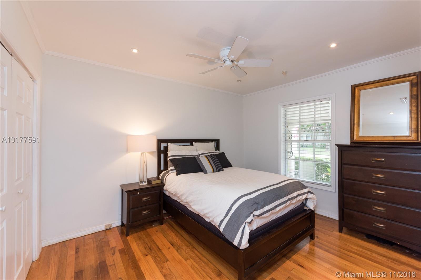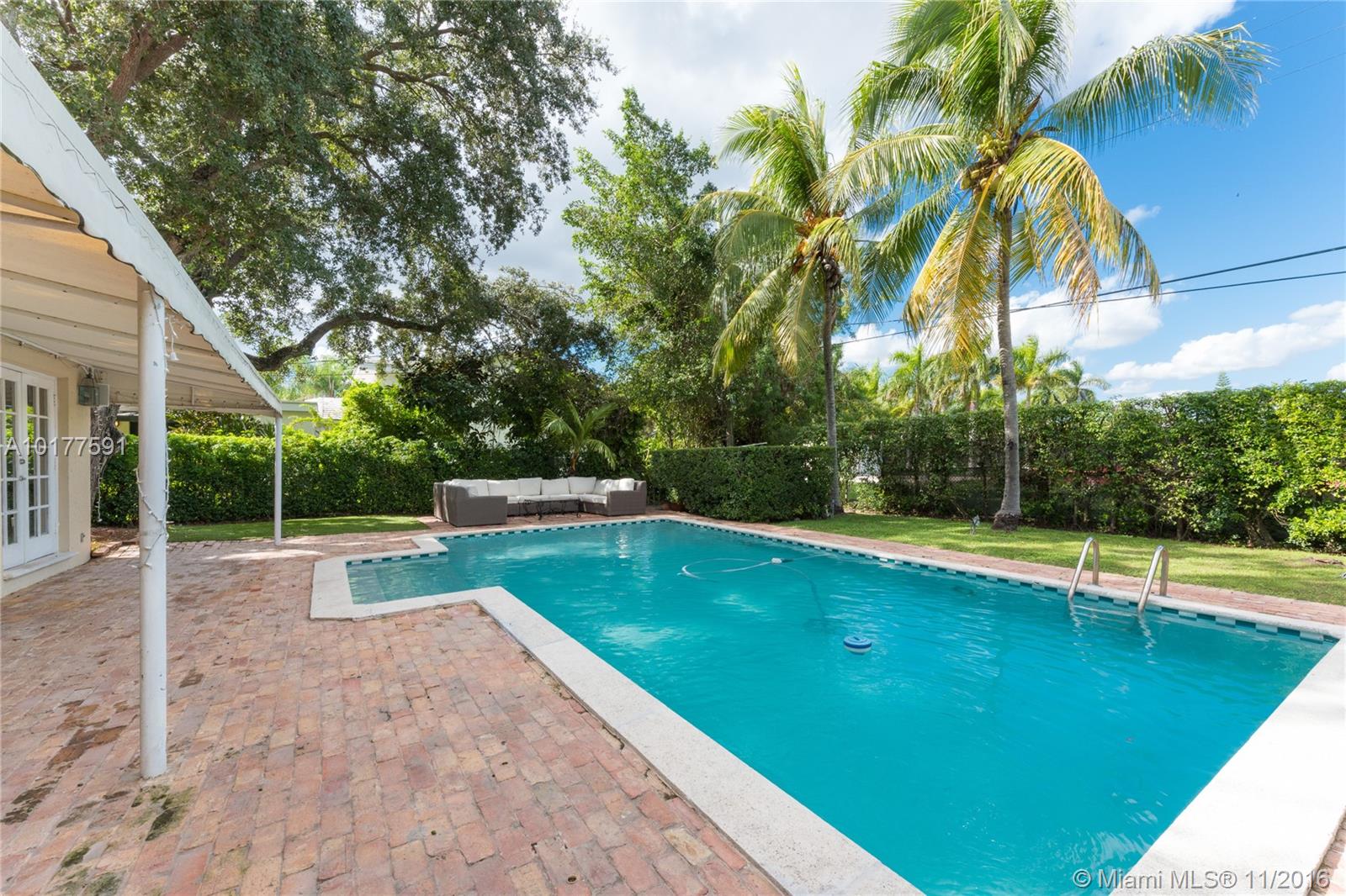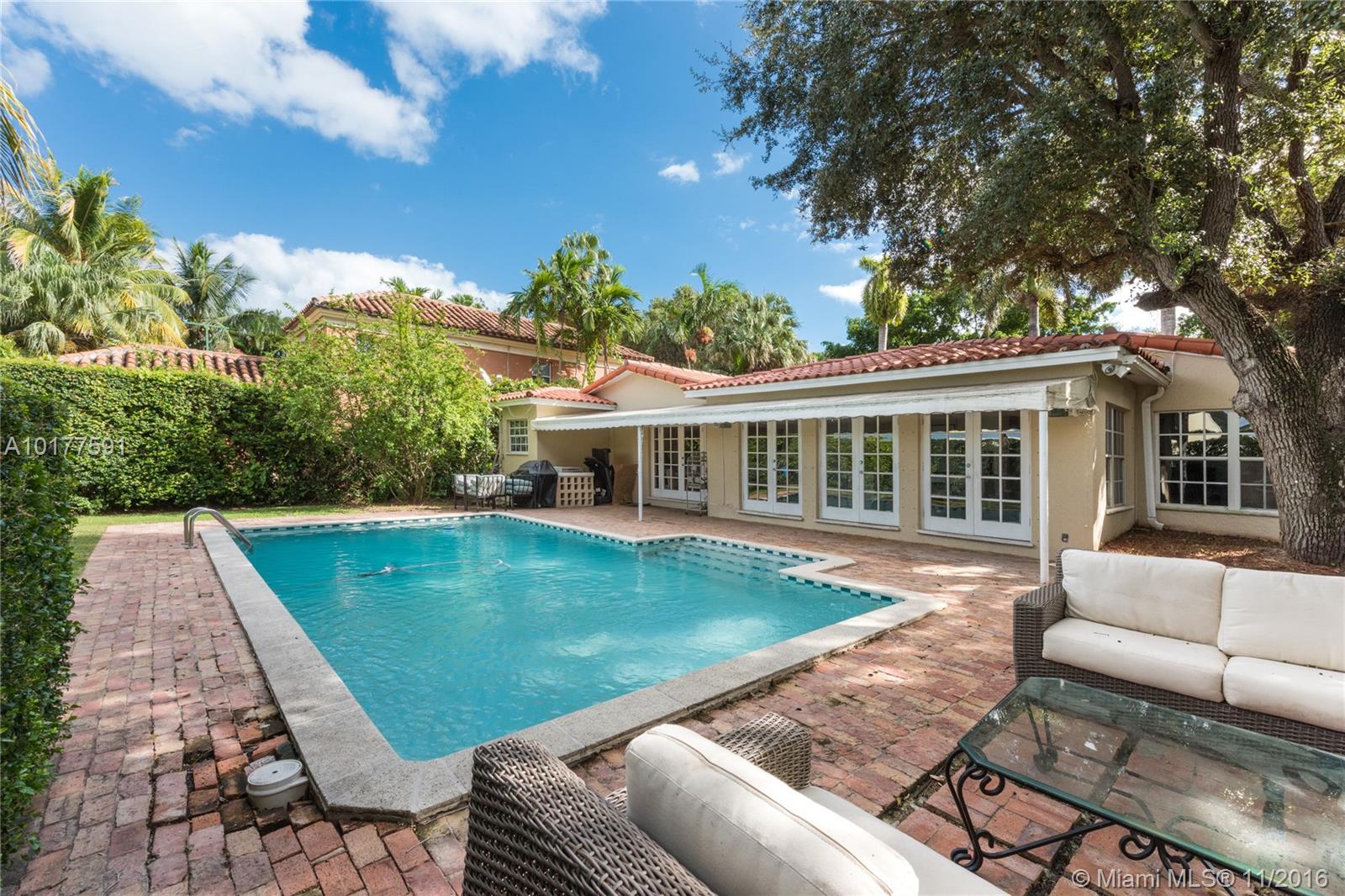 Where else in the Gables can you find a 4 bed/3 bath pool home on a quiet, tree-lined street for a great price? Opportunity to enjoy a spacious one-story abode with hardwood flrs, French drs, split bedrooms, and an expansive patio with sparkling open pool that is perfect for entertaining. Kitchen overlooks the Fam rm and the landscaped back yard. Spacious master with luxurious bath. Two other large bdrms with wide closets, and the fourth bdrm is on opposite side of house, making it perfect for guests.